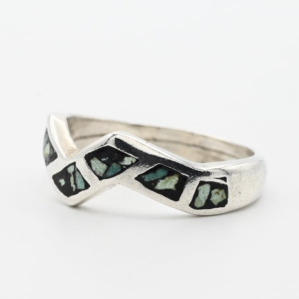 Crush Turquoise Inlay ZIGZAG Design Ring #15.5 / USA