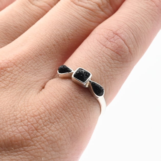 Black Pumice Stone Accent Modern Design Ring #15.0 / Denmark