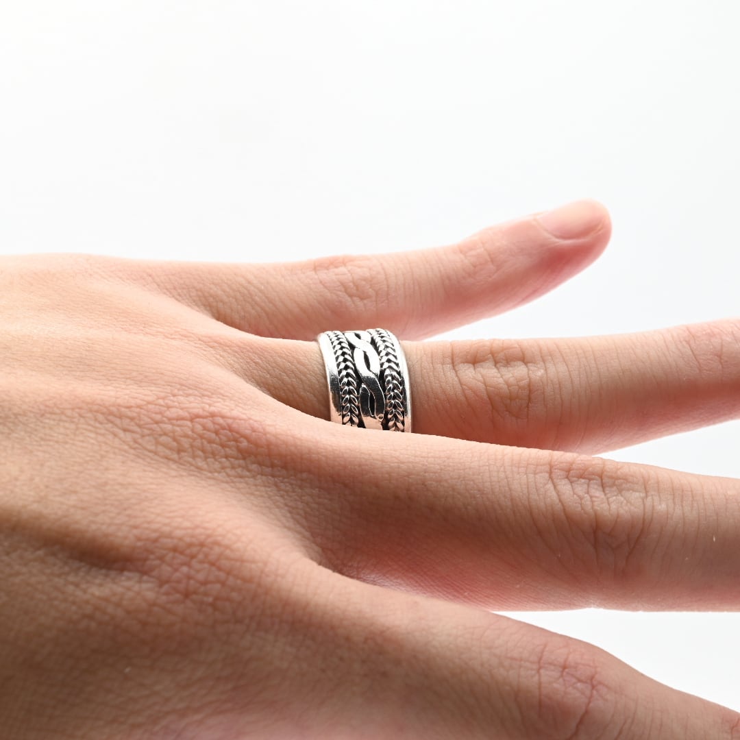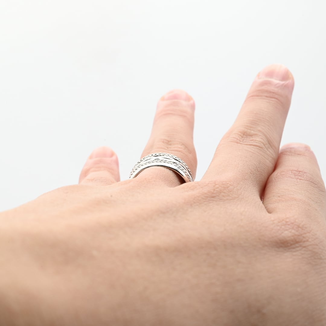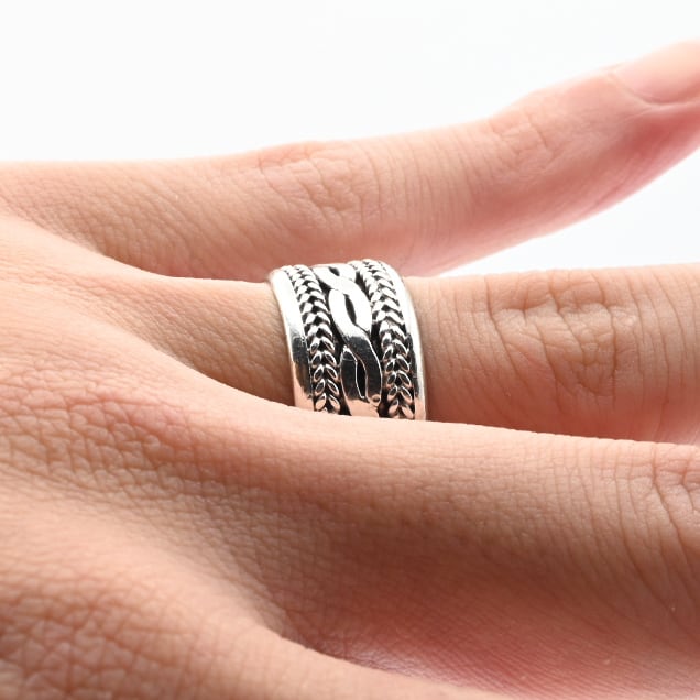 Iconic Chain Design Wide Band Ring #15.5 / Denmark
