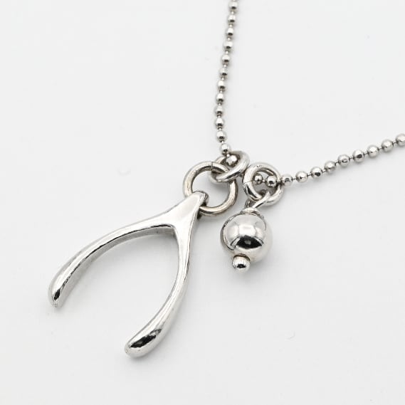 Sophisticated Wish Bone Top Silver Chain Necklace / Italy