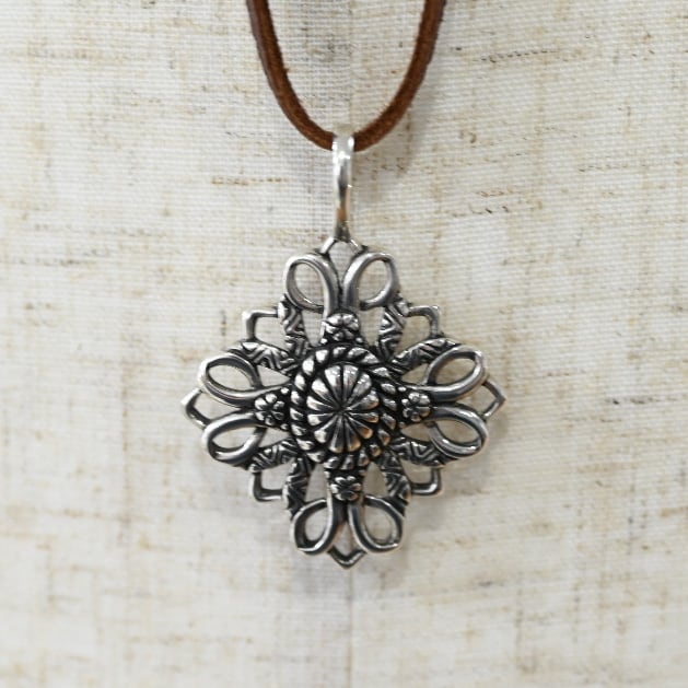 Elegant Flower Design Pendant Top By Carolyn Pollack With Deer Leather Strap / USA