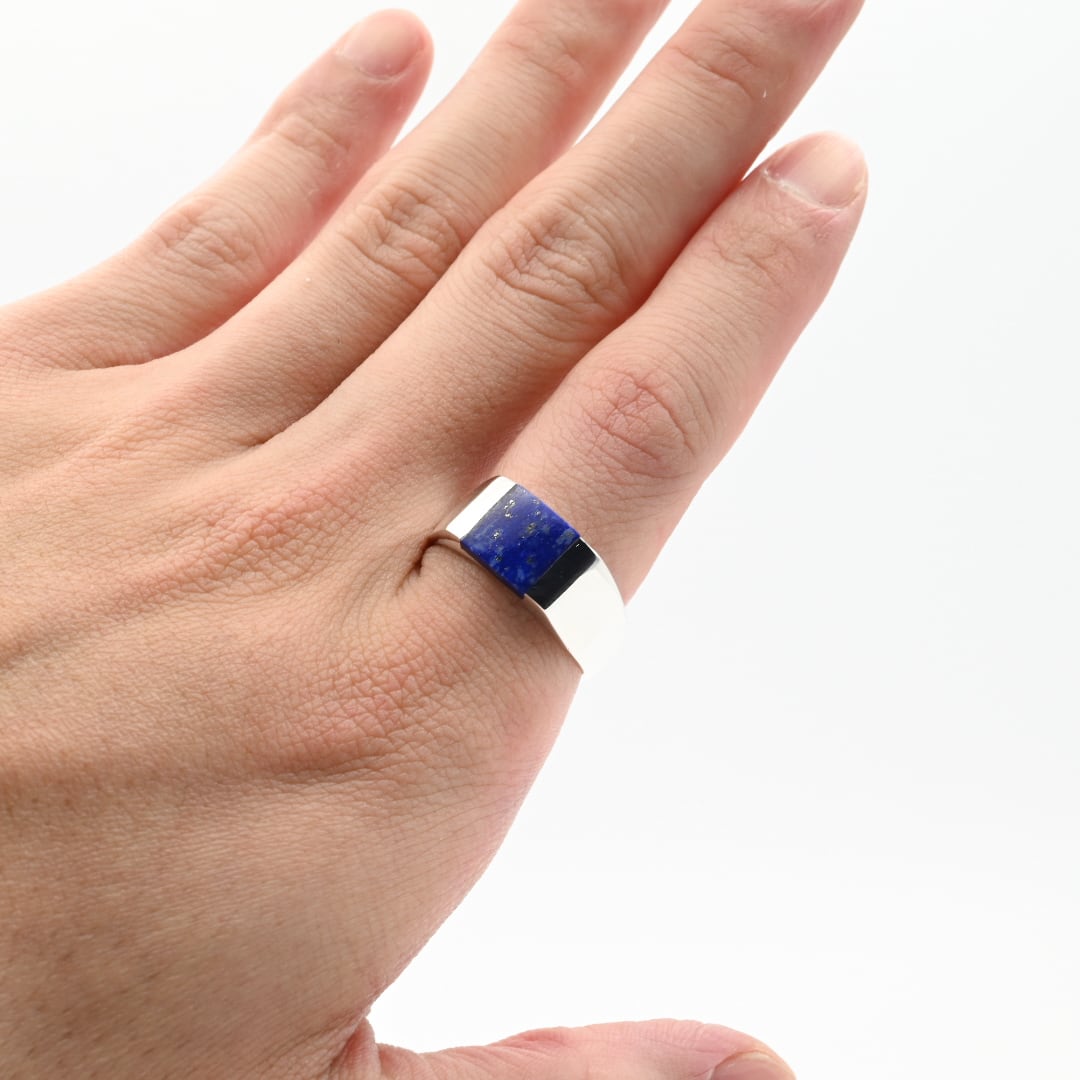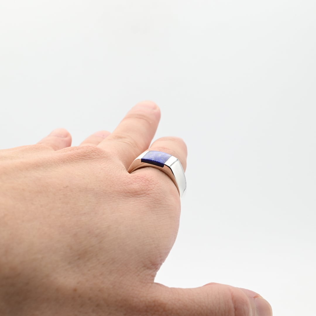 Lapis Lazuli Inlay Square Top Signet Ring #20.5 / Denmark
