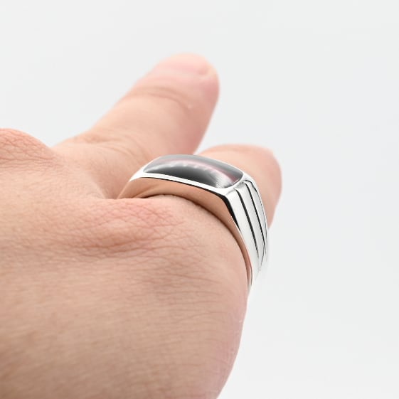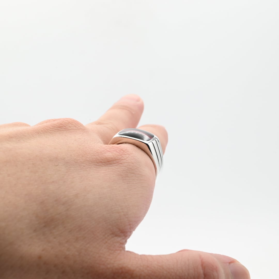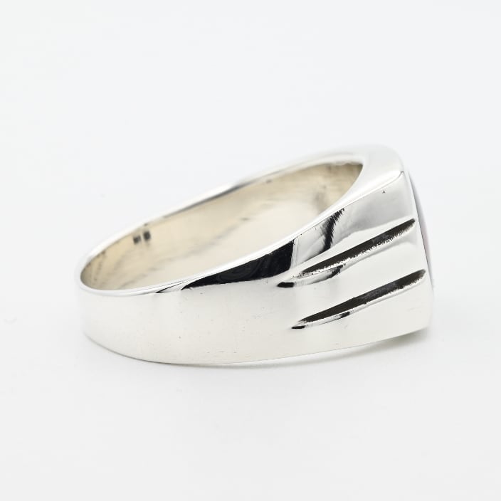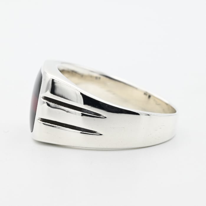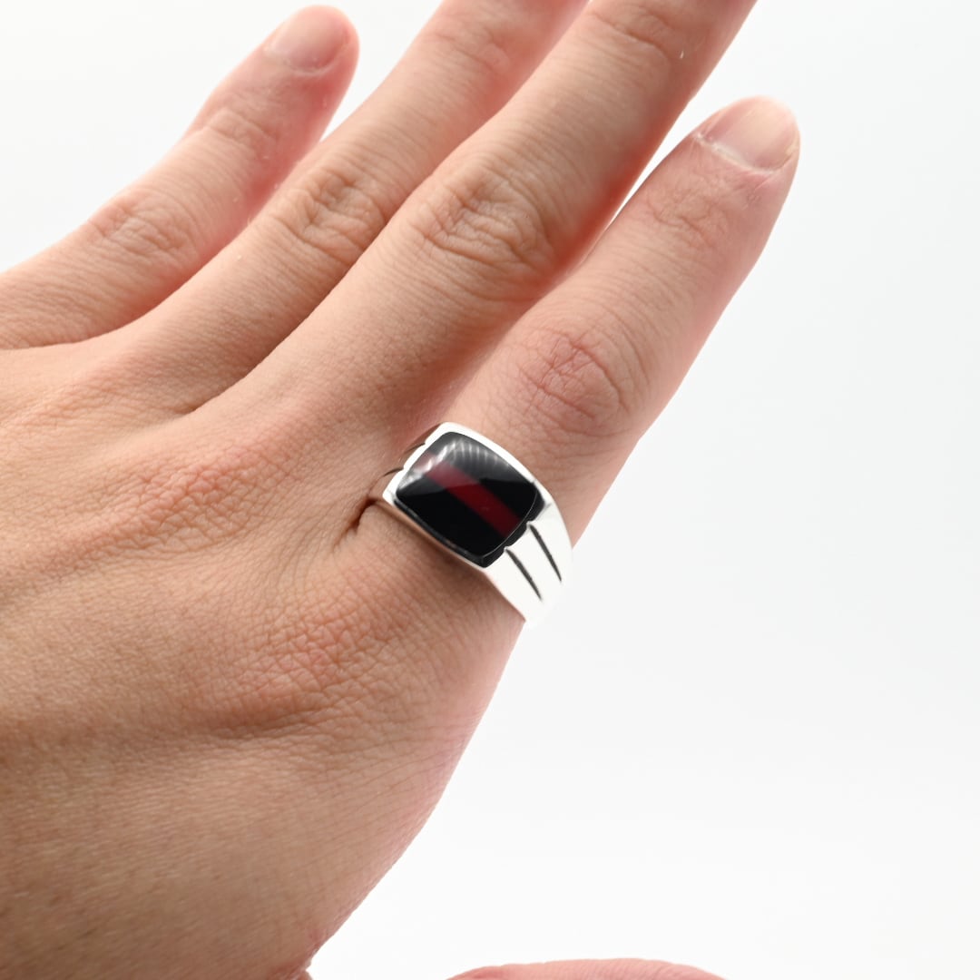 ブラック×レッドの美しいトップデザインが魅力のシグネットリング。