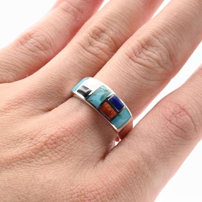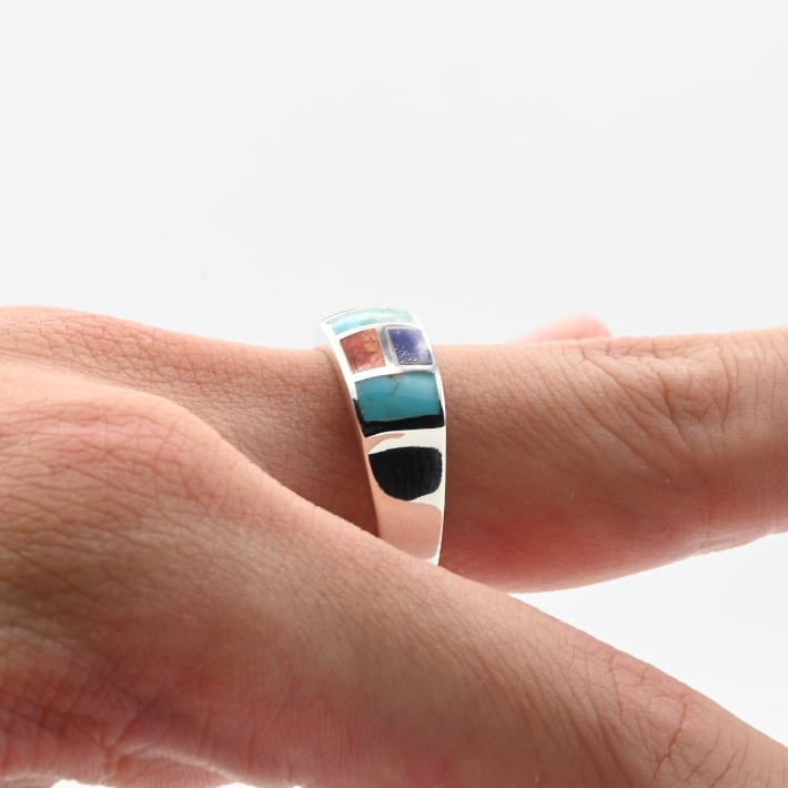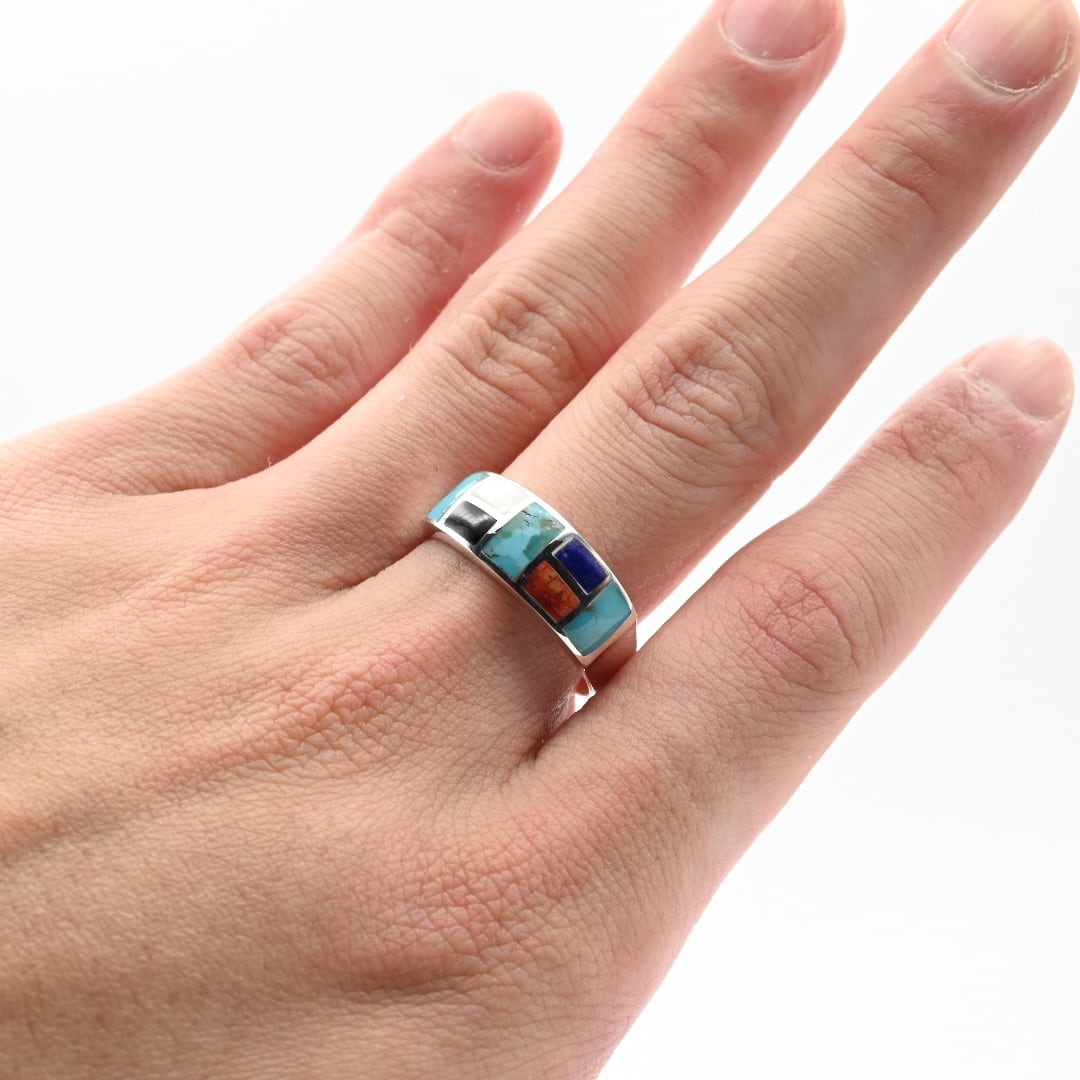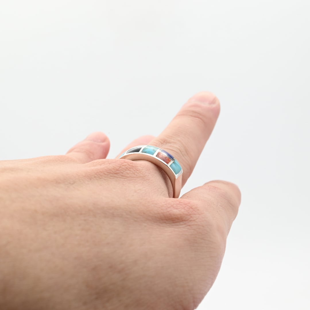 Multi Stone Inlay Square Top Signet Ring #23.0 / Denmark