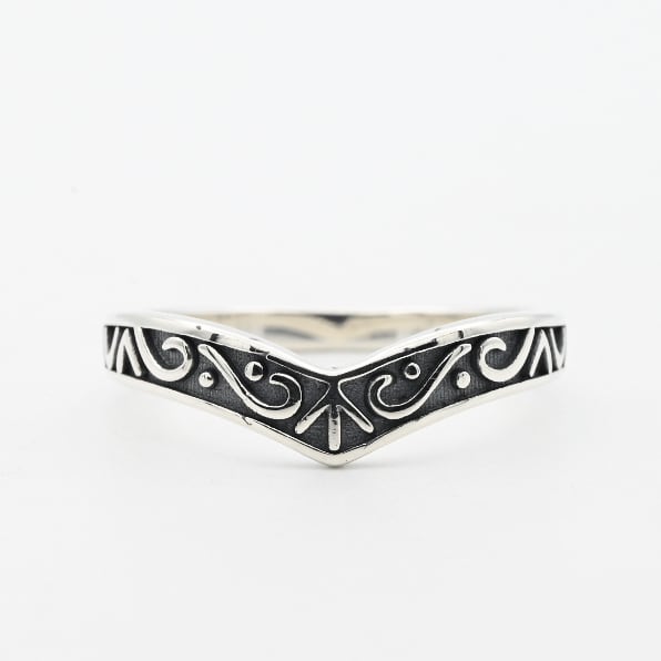 ハンドカットで生み出された立体的な模様に燻加工を施し、シルバー×ブラックのメリハリの効いたコントラストをお楽しみいただける一品です。