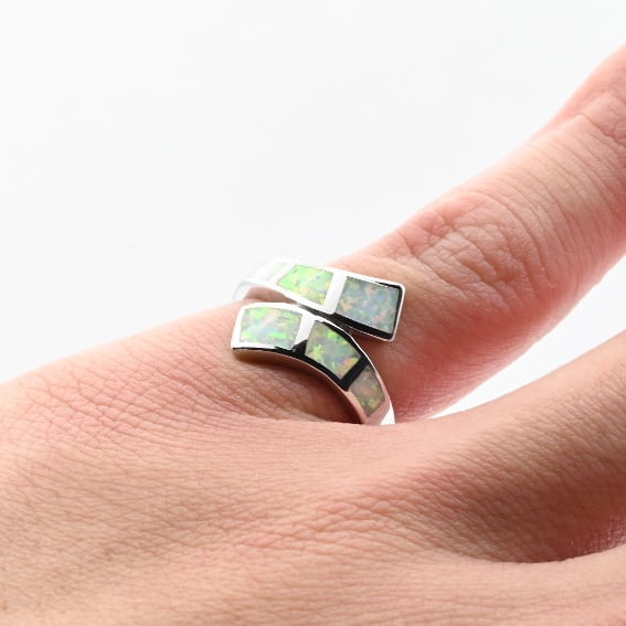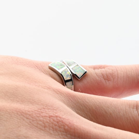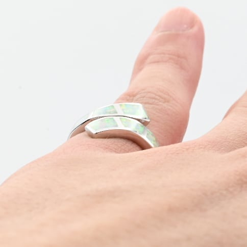 White Opal Inlay Wrap Style Design Ring #9.5 / Denmark