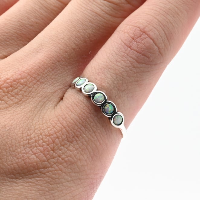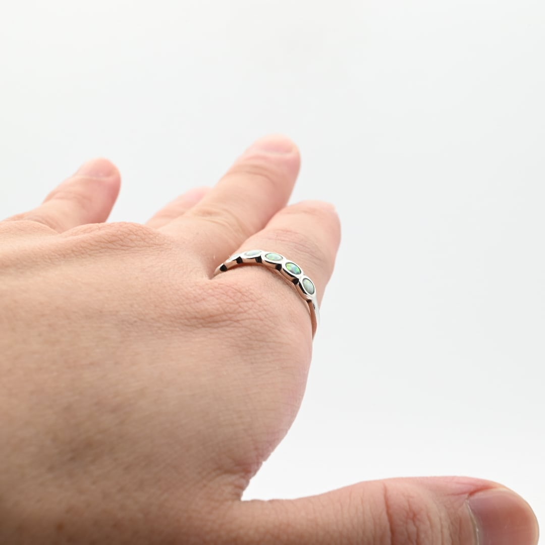 White Opal Accent Continuous Circle Design Ring #21.5 / Denmark