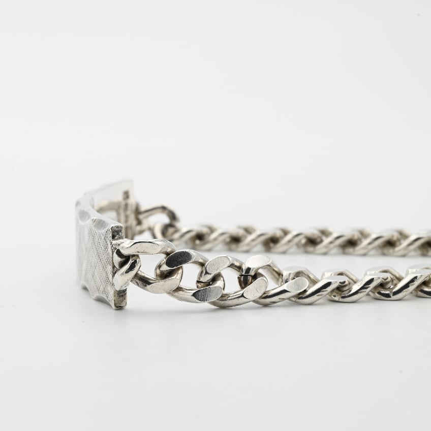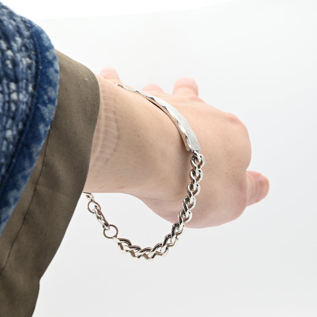 男臭くなりがちなIDブレスレットを現代版に昇華させたような、美しい佇まいが魅力の一品です。