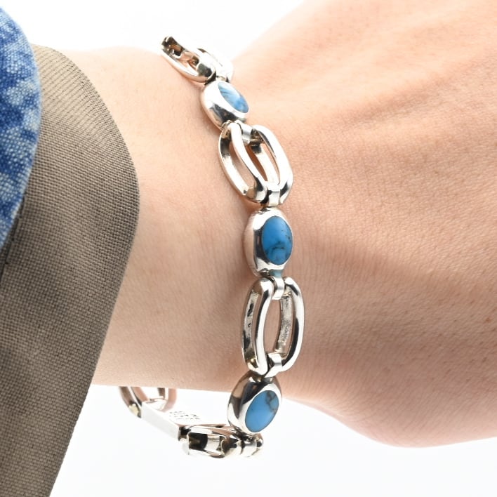 Turquoise Accent Graceful Design Bracelet / Mexico
