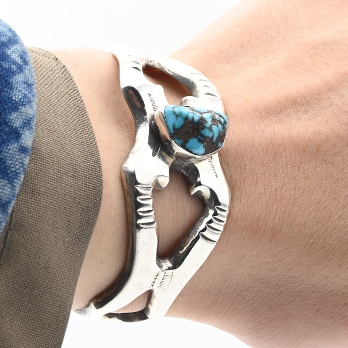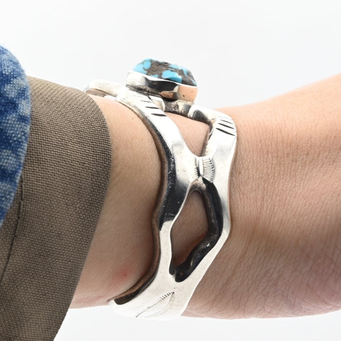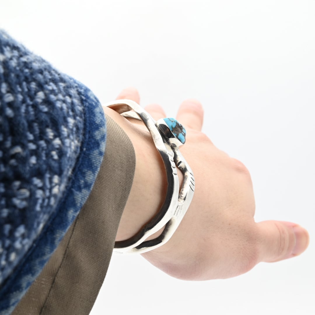 躍動感を感じるデザインワークと、トップの荒々しさを残した上質なターコイズに目が奪われるアイテム。