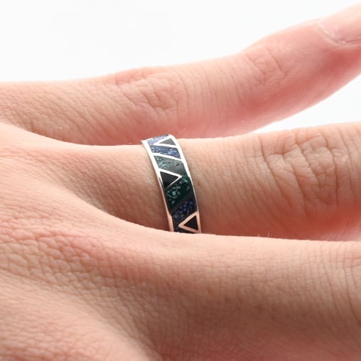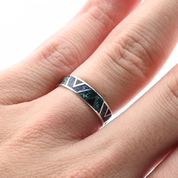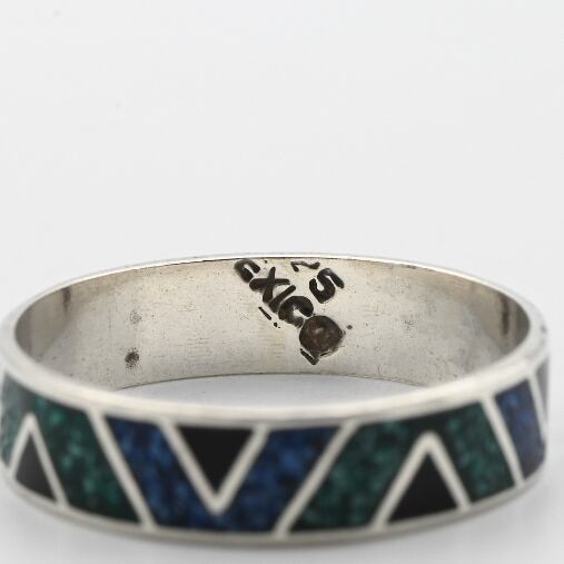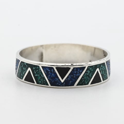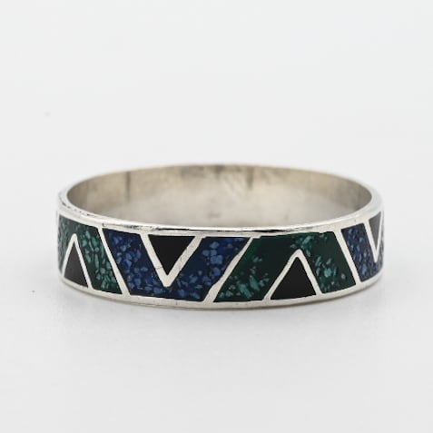 Multi Color Stone Inlay Thin Band Ring #13.5 / Mexico