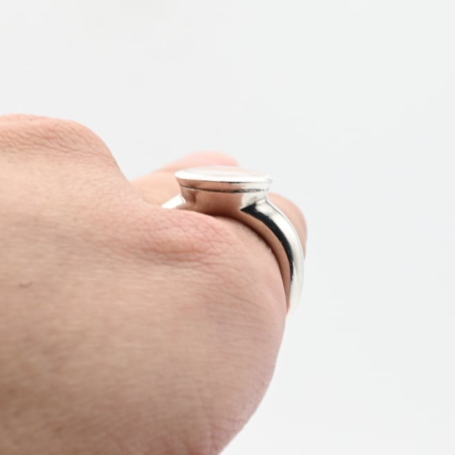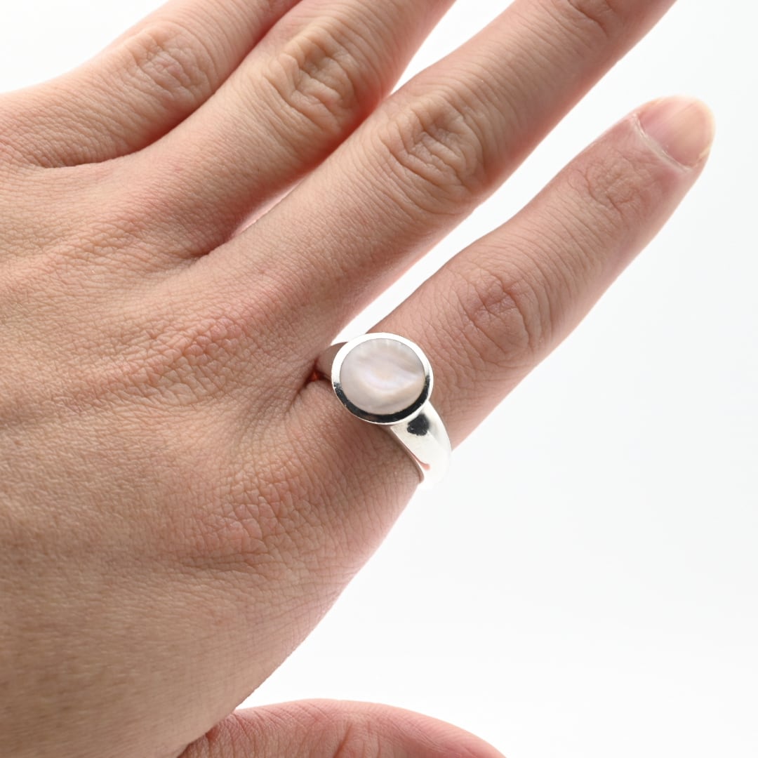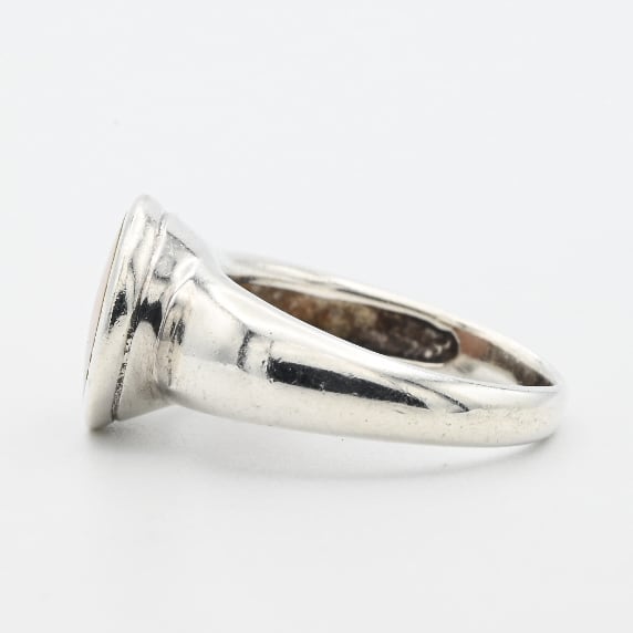 Pink Mother Of Pearl Inlay Round Signet Ring #16.0 / Denmark