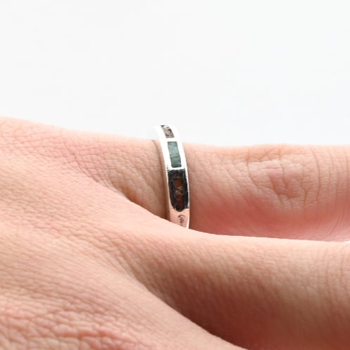 ミニマムなフォルムのトップに、落ち着いた色味のストーンが配されたバンドリング。
