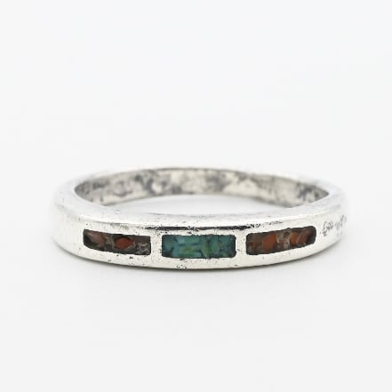 Crushed Turquoise/ Coral Inlay Thin Band Ring #11.0 / USA