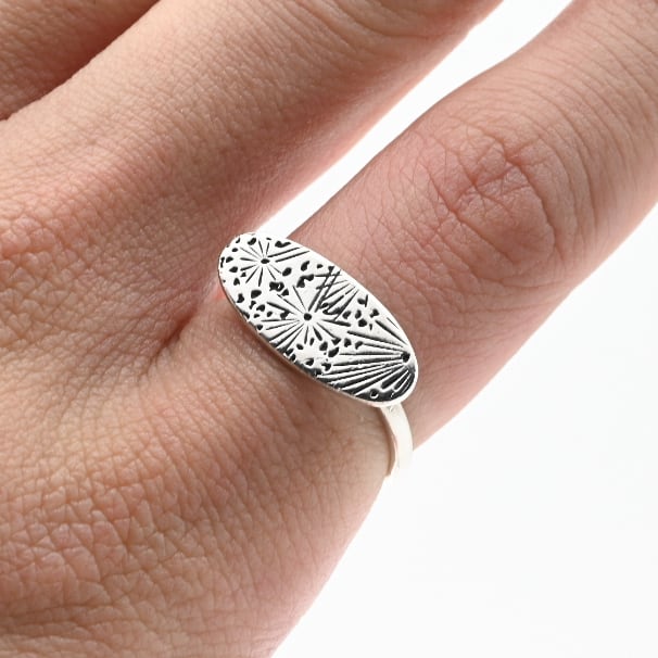 Fire Works Design Oval Statement Ring #13.0 / Denmark