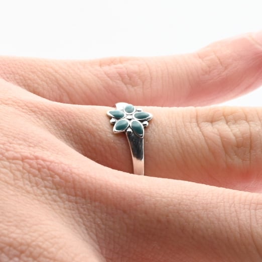 Turquoise Accent Tiny Flower Design Ring #12.0 / Denmark