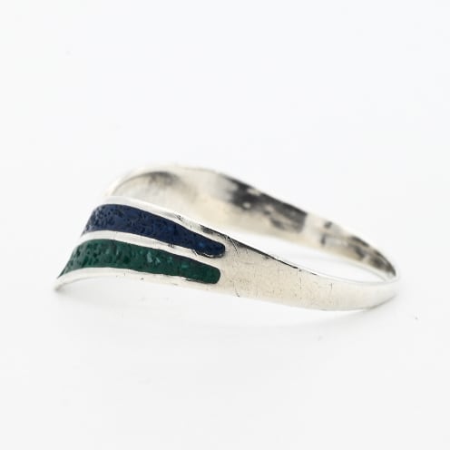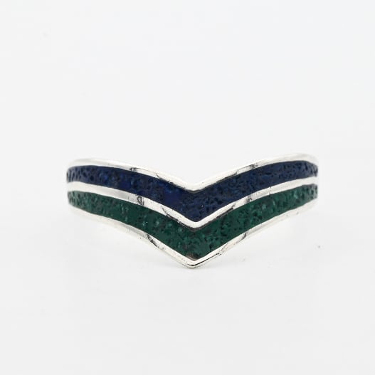 Crushed Turquoise/ Lapis Lazuli Inlay Wishbone Design Ring #17.0 / Mexico