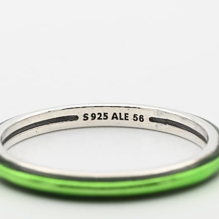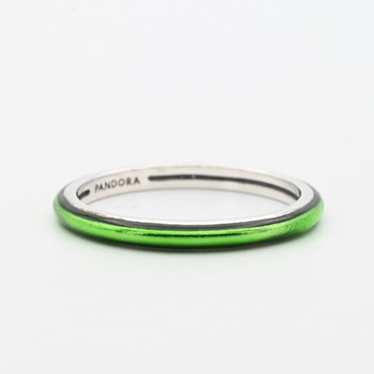 Green Enamel Accent Thin Barrel Style Ring #15.0 / Denmark