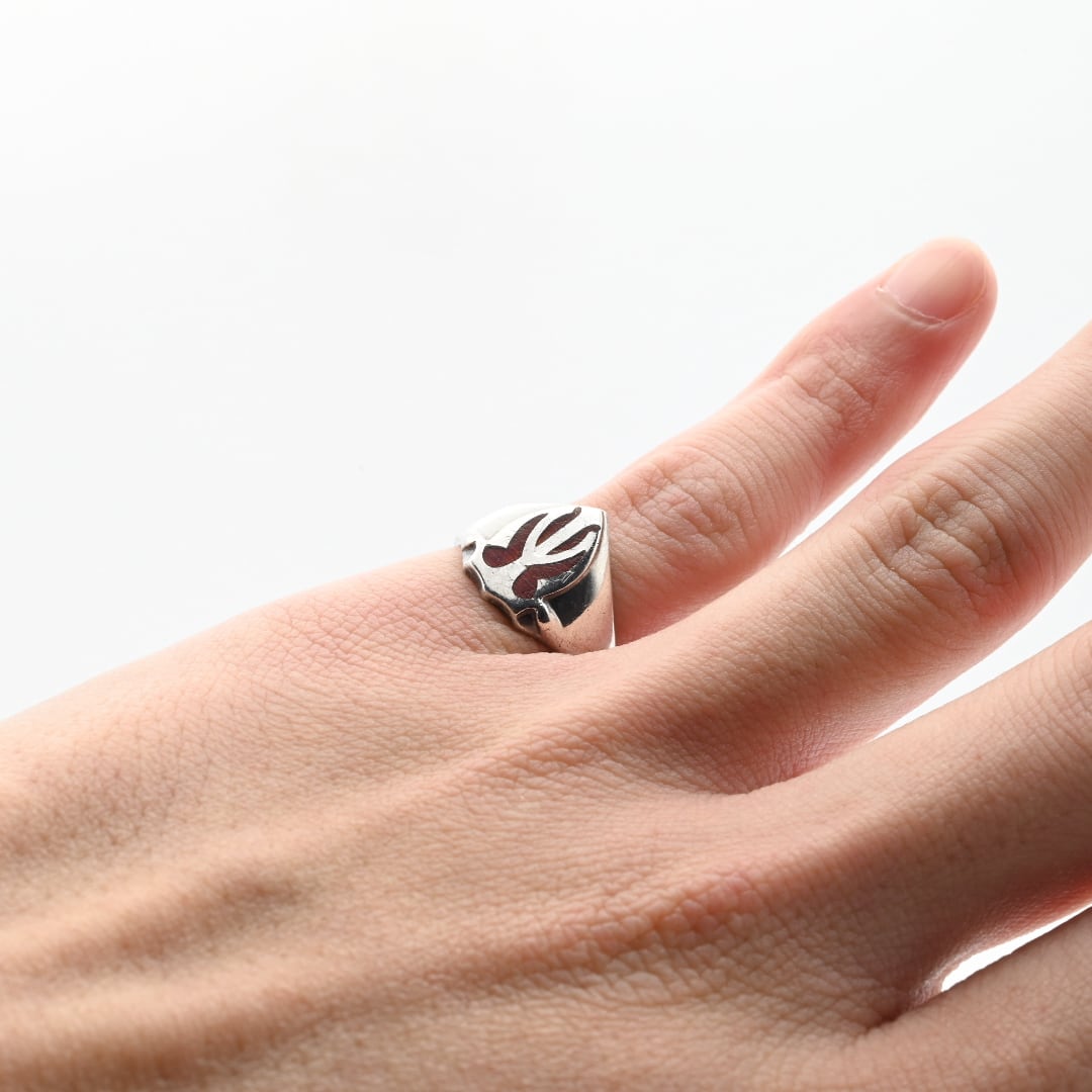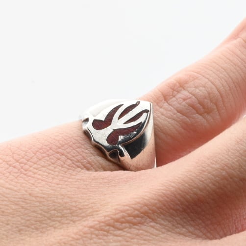 Red Enamel Inlay Fancy Top Design Ring #11.0 / Denmark