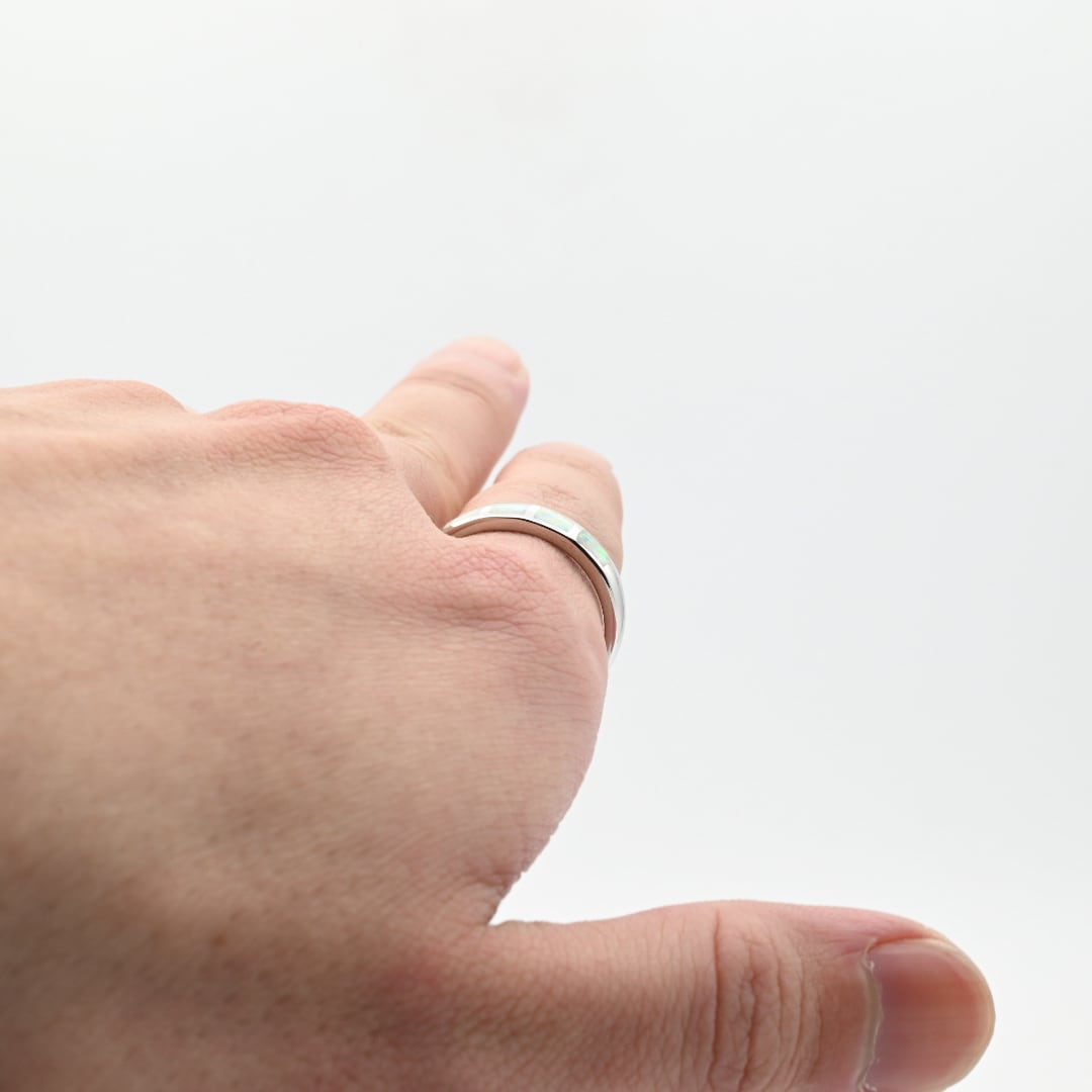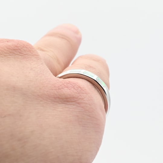 White Opal Inlay Modern Style Ring #20.5 / Denmark
