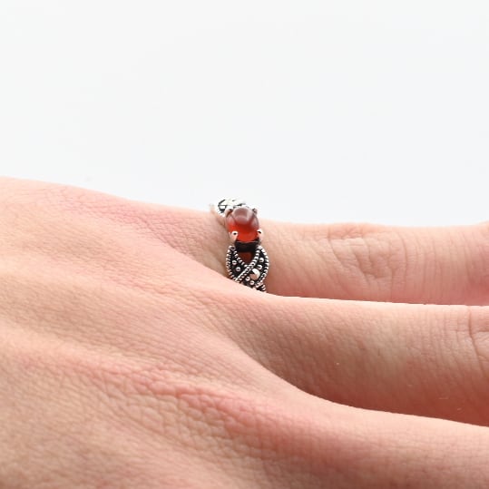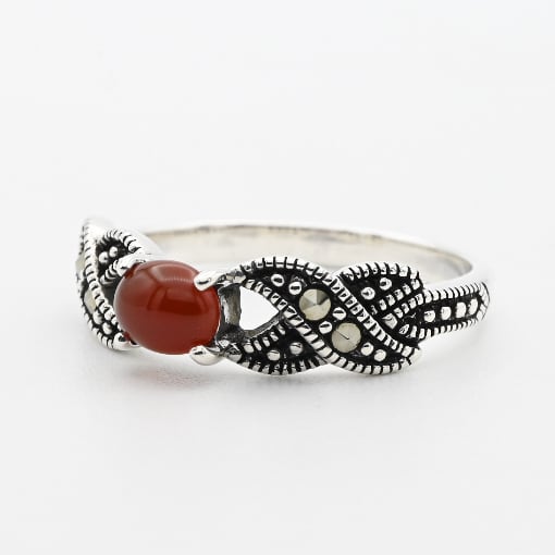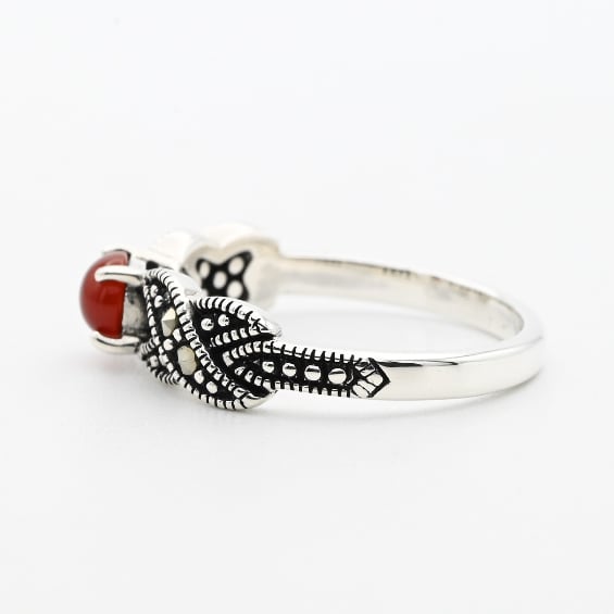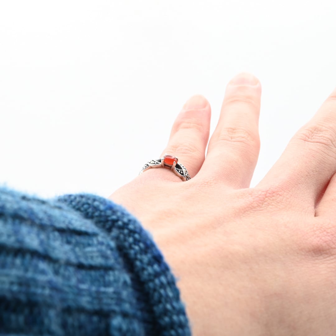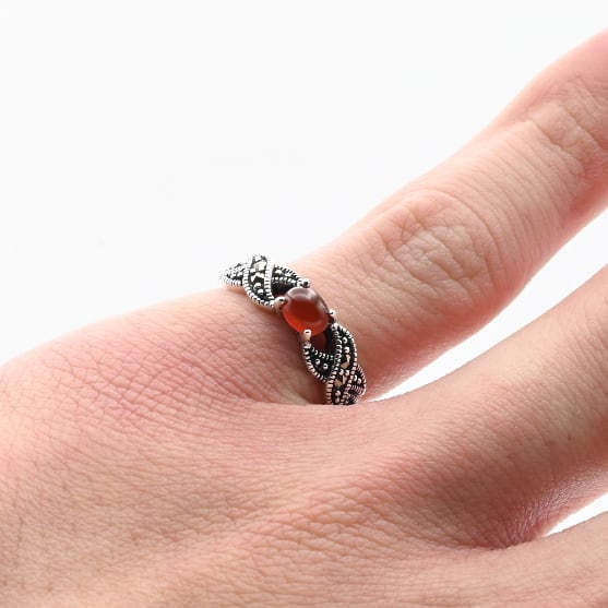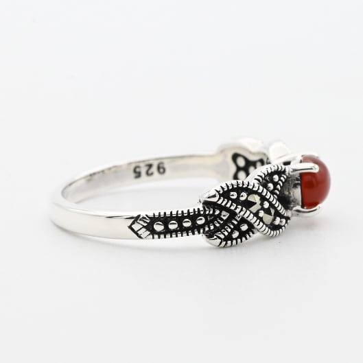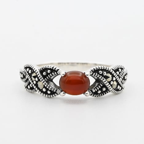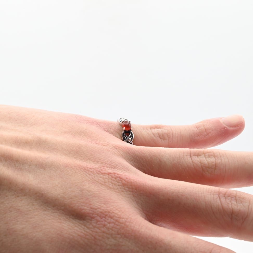 Carnelian / Marcasite Accent Dainty Design Ring #11.0 / Denmark