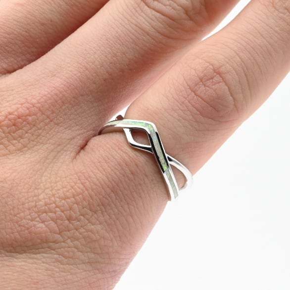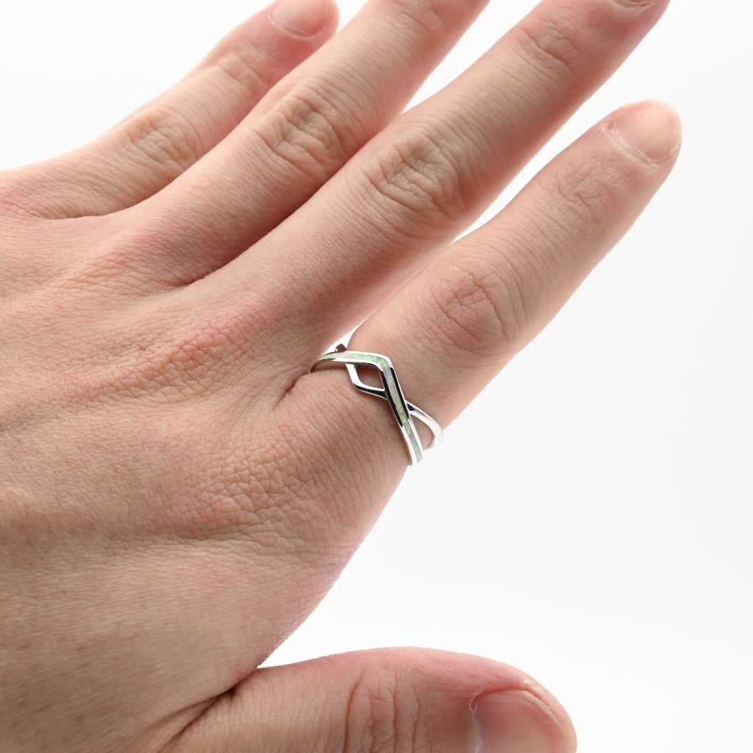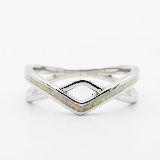 White Opal Accent Shimmering Design Ring #16.0 / Denmark