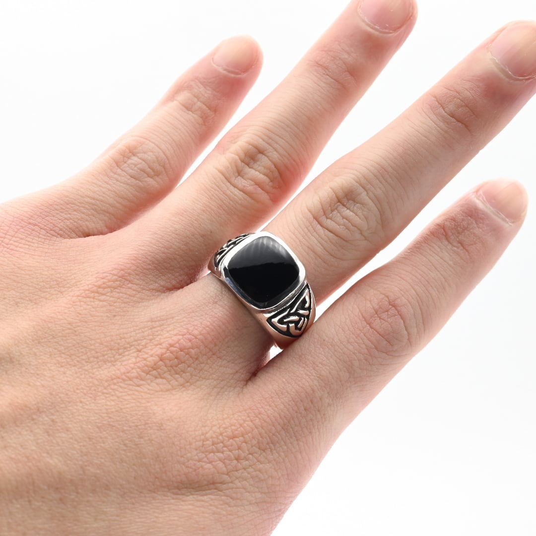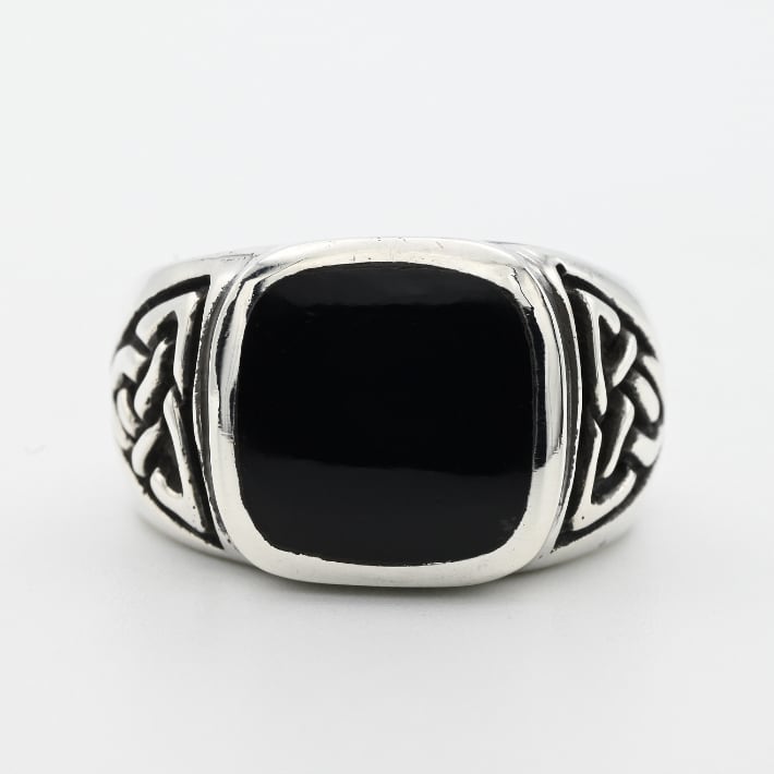 Square Black Onyx Top Designed Signet Ring #20.5 / Denmark