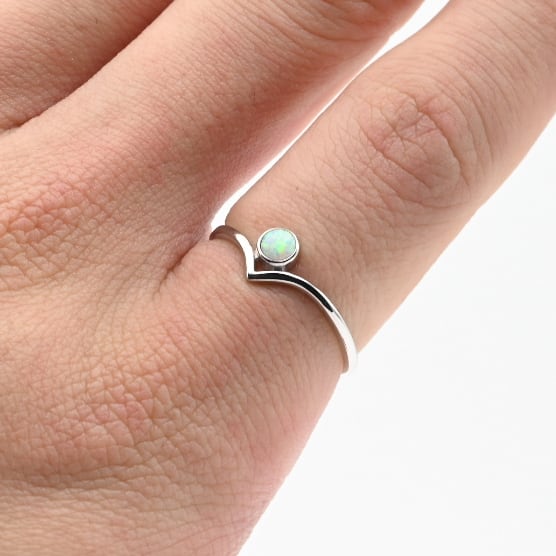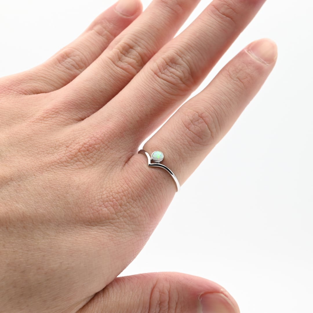 White Opal Accent Fancy Wishbone Style Ring #16.0 / Denmark