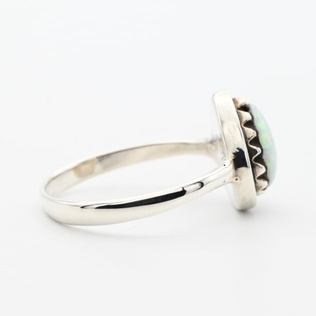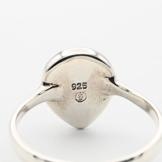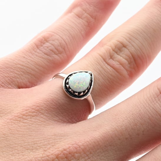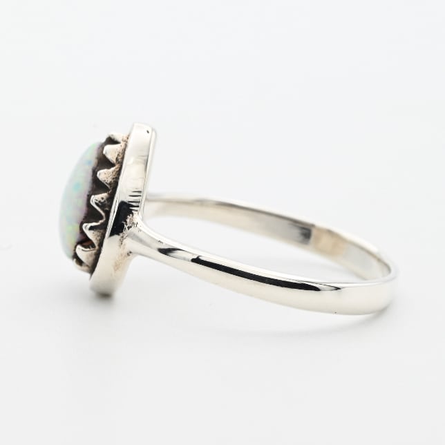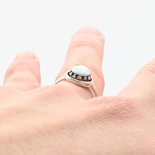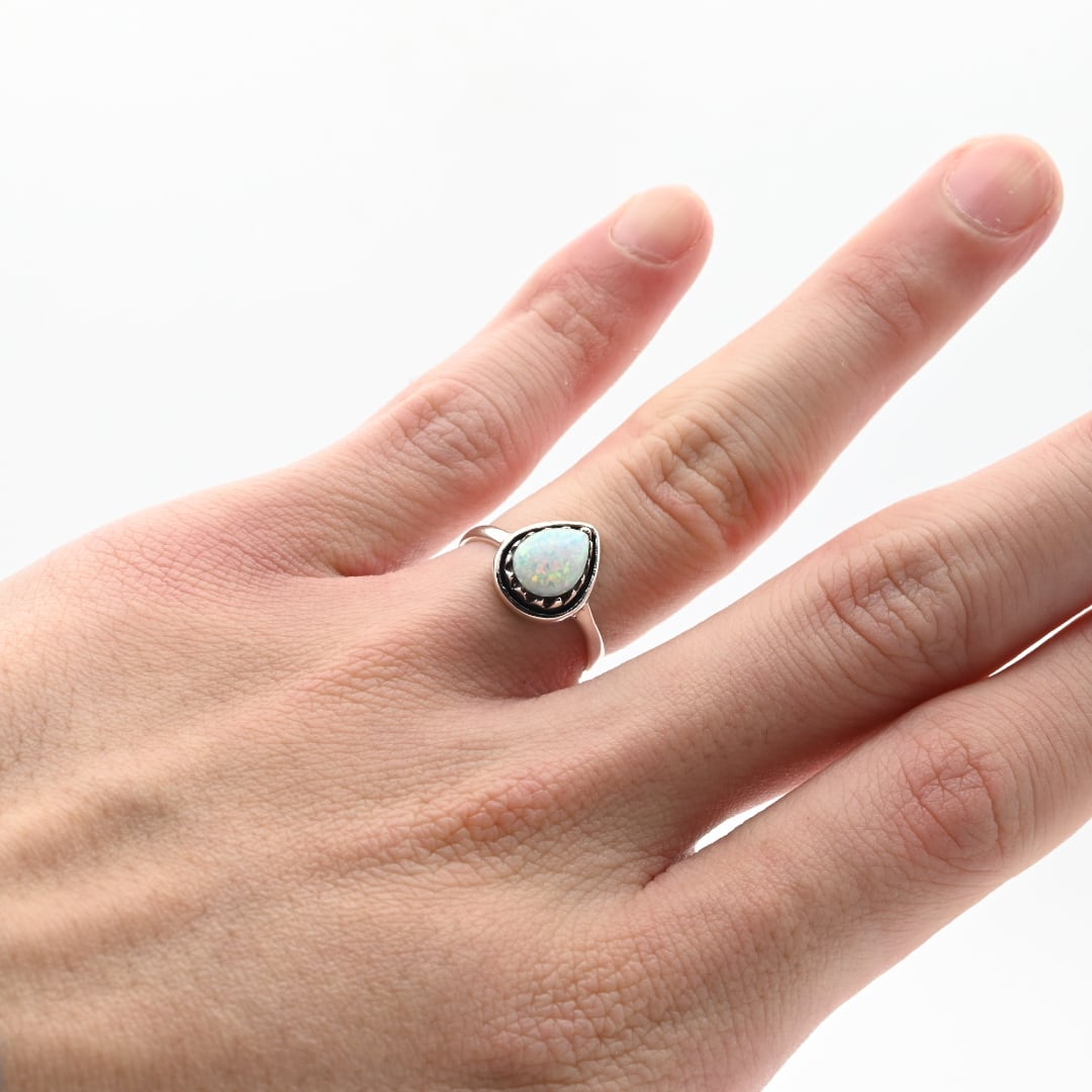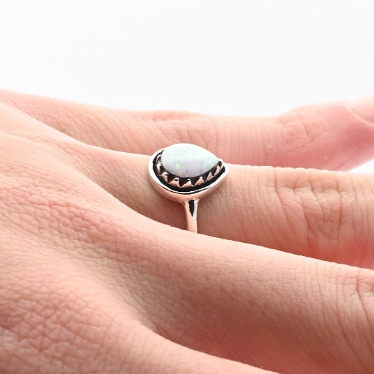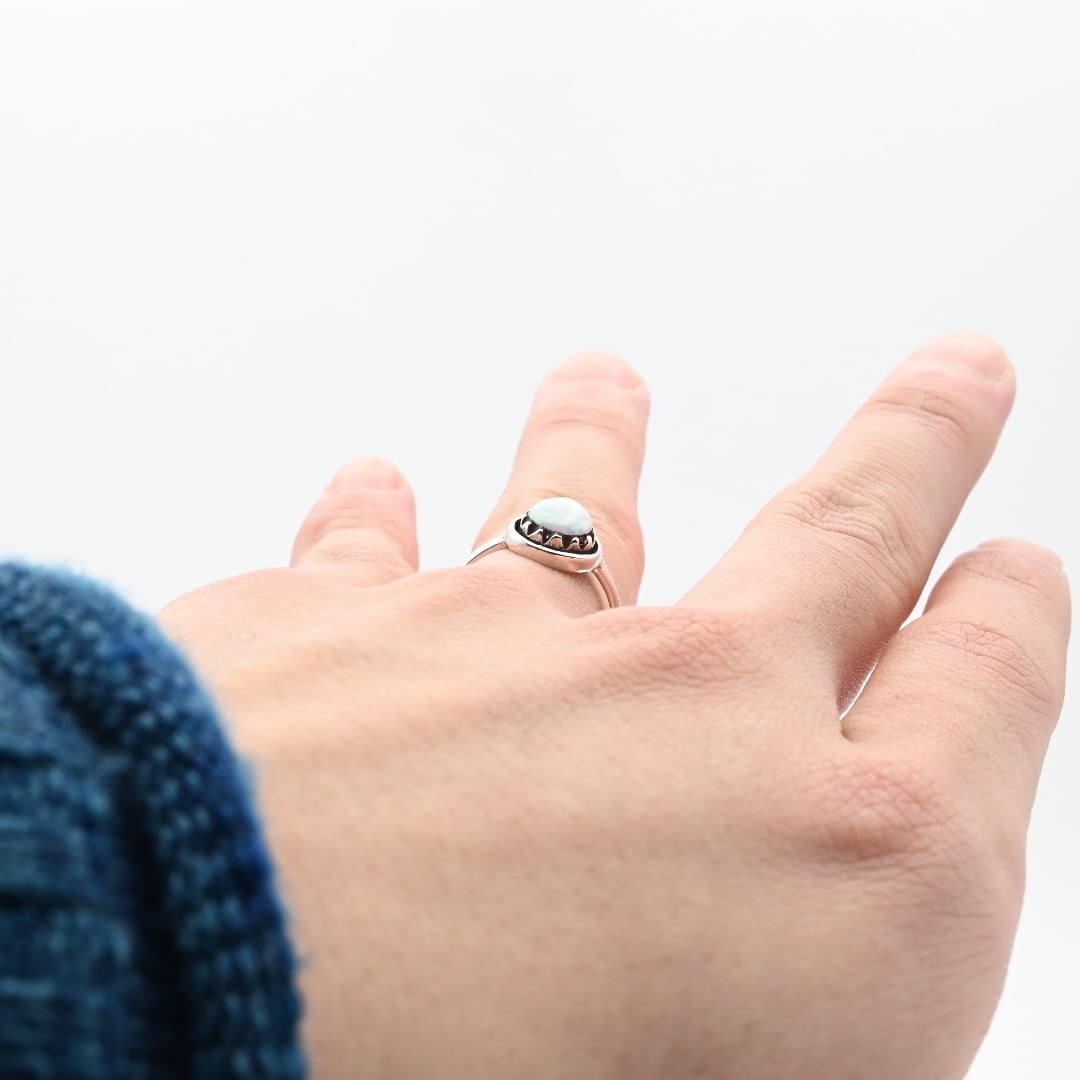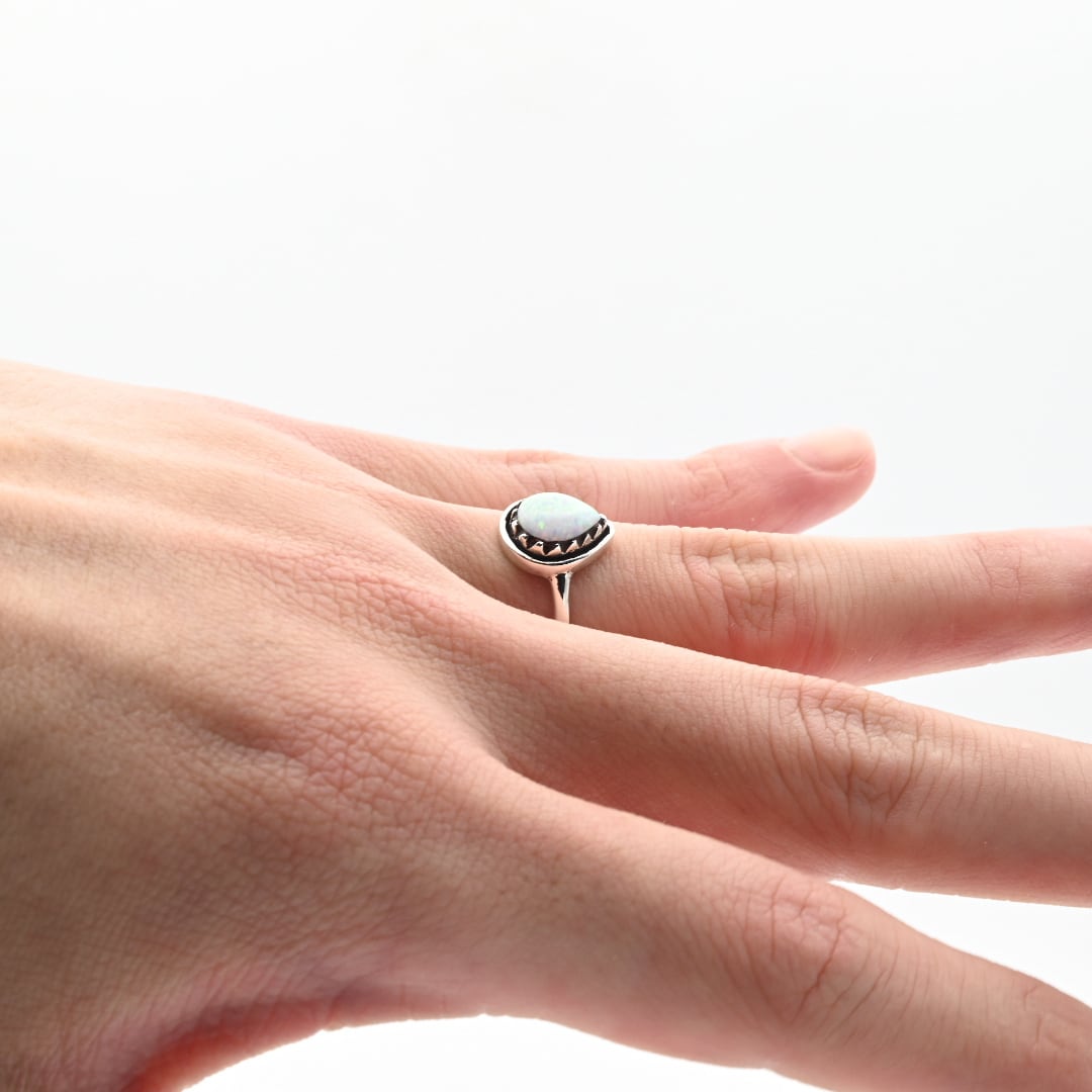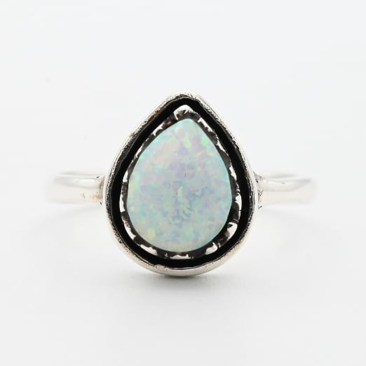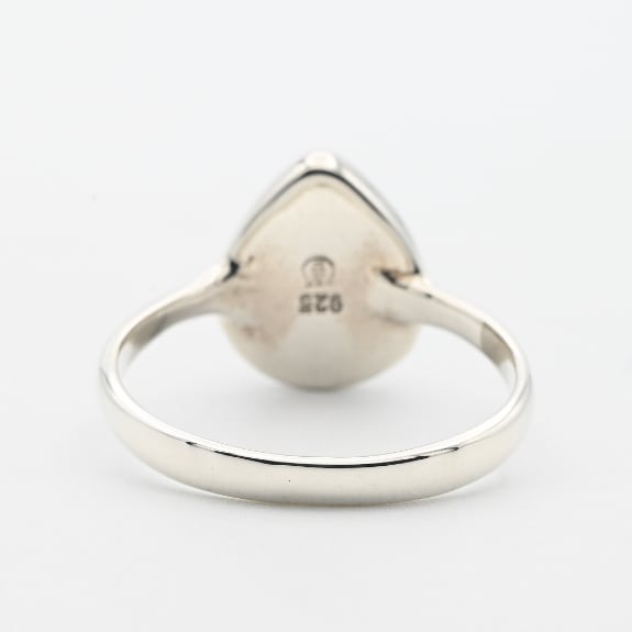 White Opal Accent Rounded Tear-drop Design Ring #13.5 / Denmark