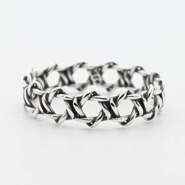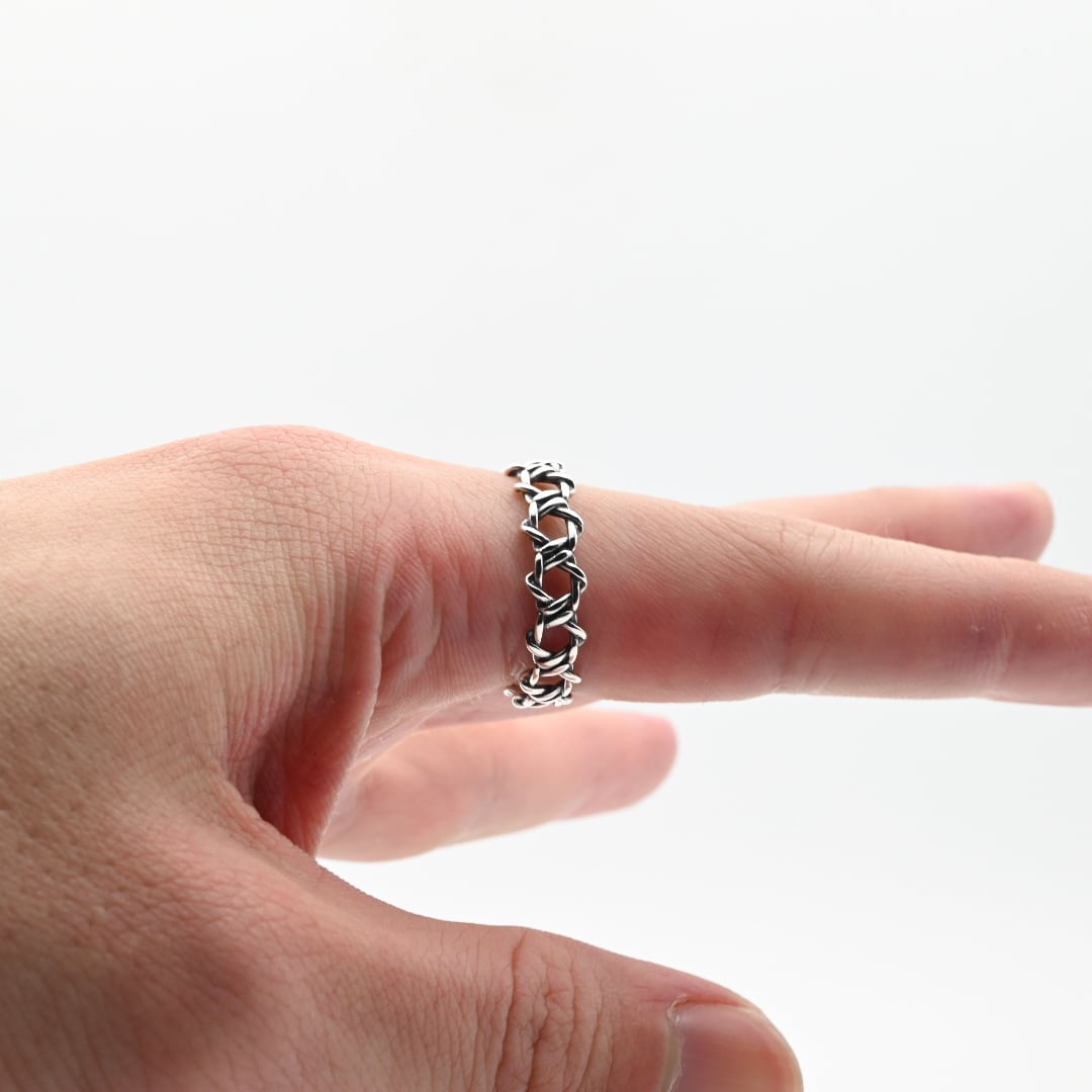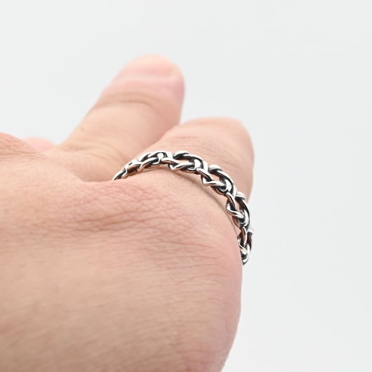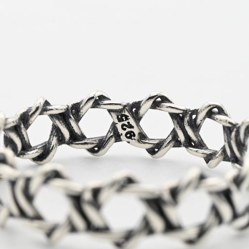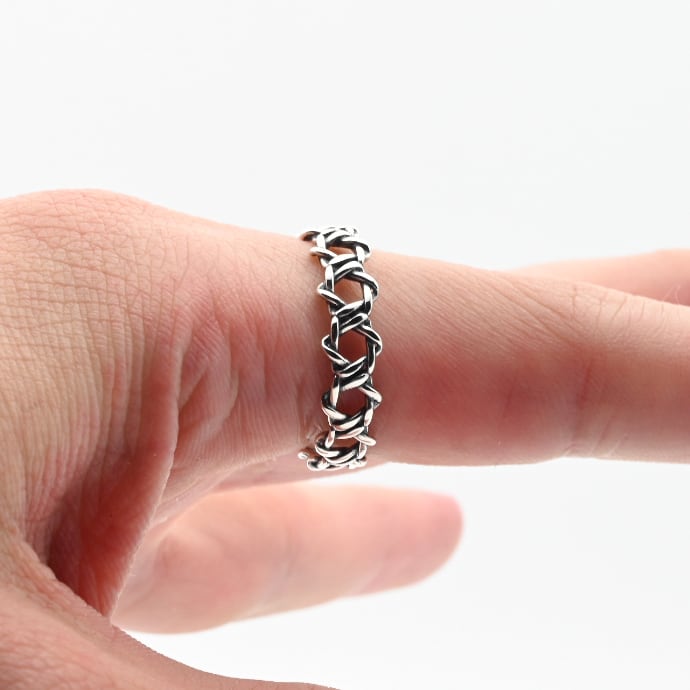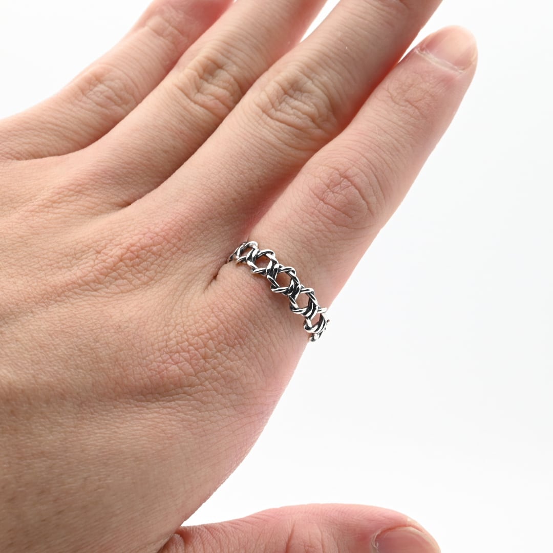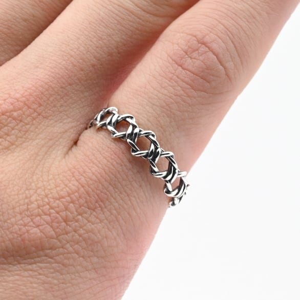 紐状に伸ばしたシルバーを実際に編み込んで形成されたバンドリング。