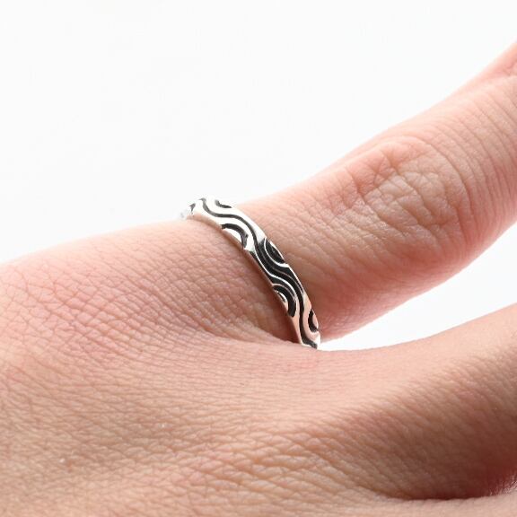 Cutting Out Wavy Design Thin Band Ring #11.0 / USA