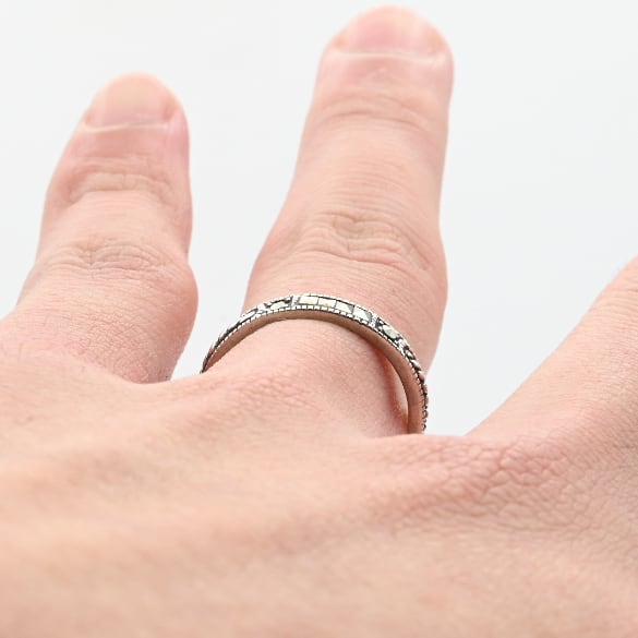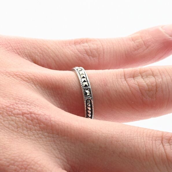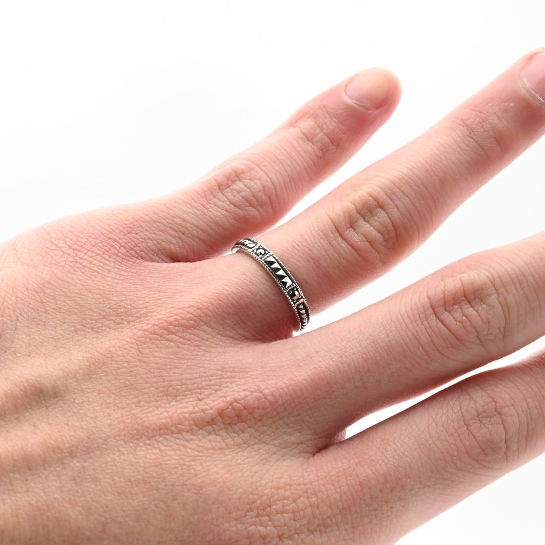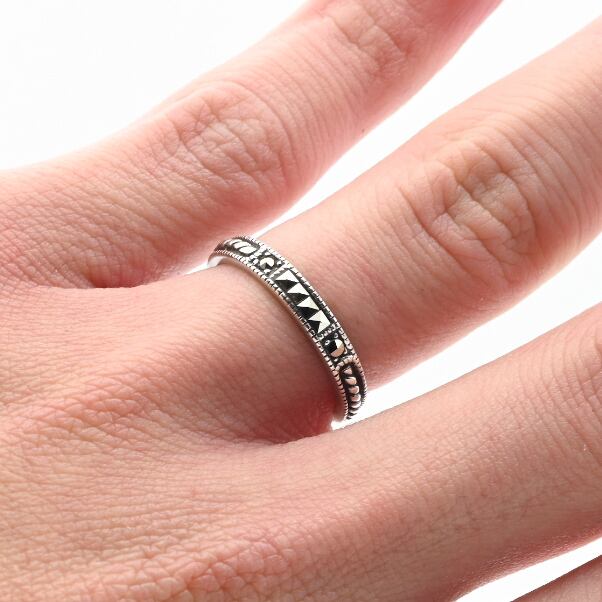 Marcasite Studs Accent Thin Band Ring #13.5 / Denmark
