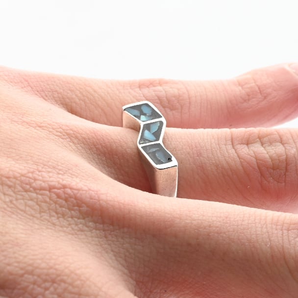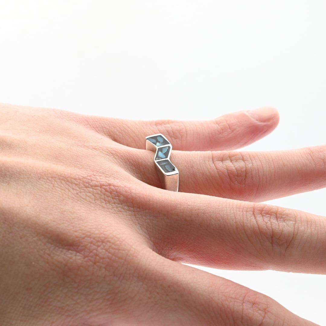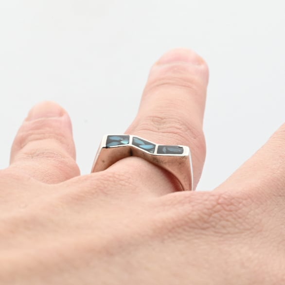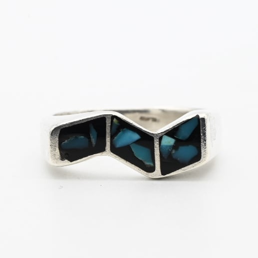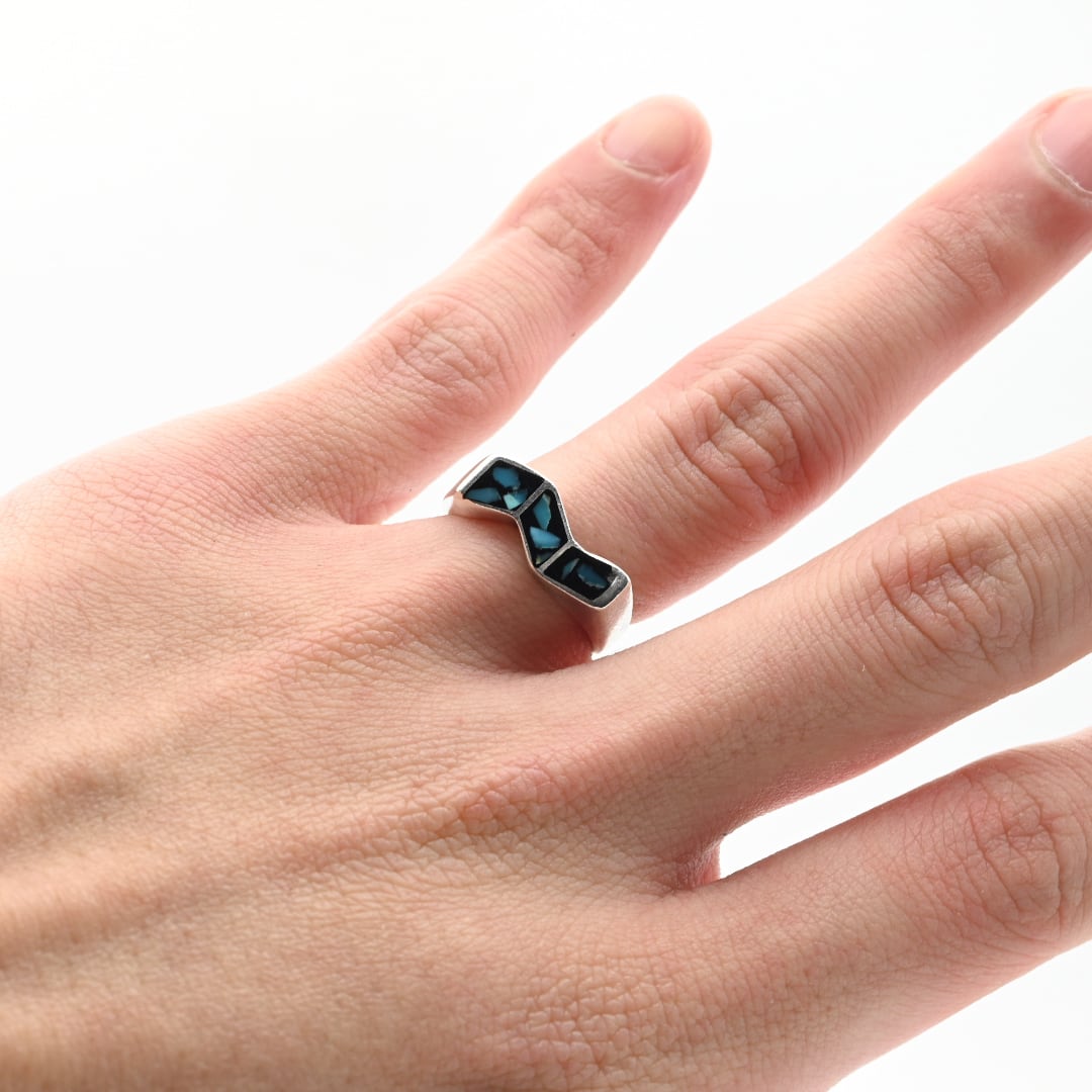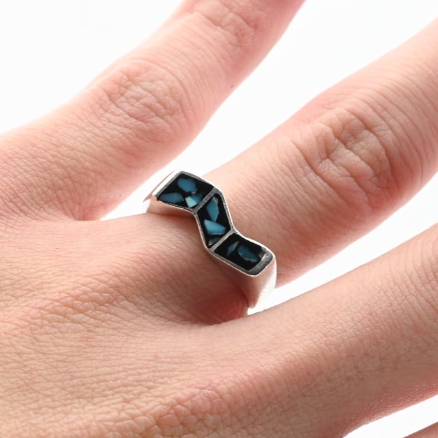 Crush Turquoise Inlay ZIGZAG Top Design Ring #14.0 / USA