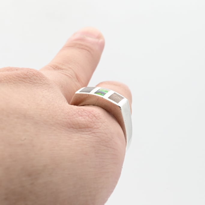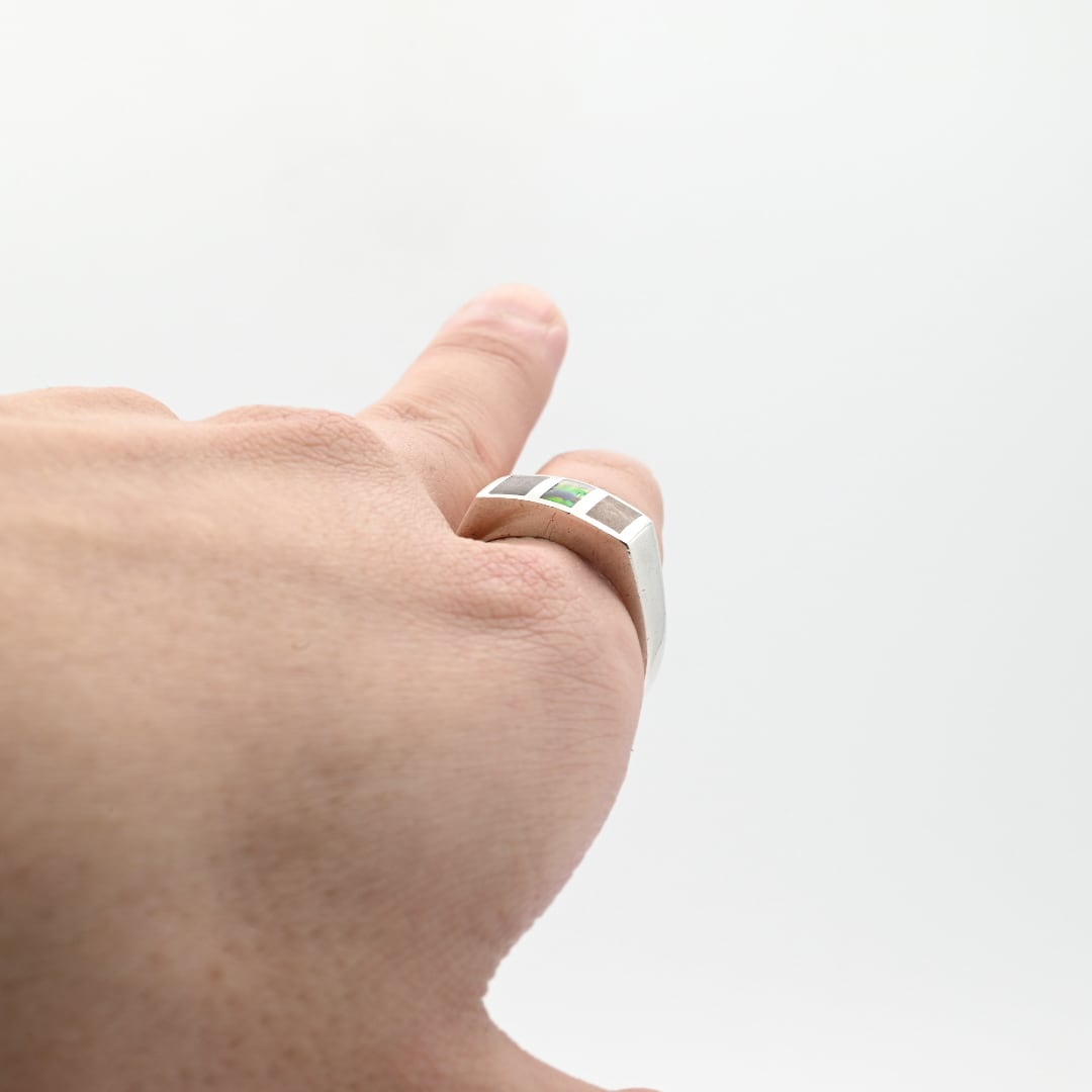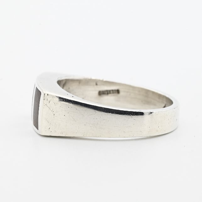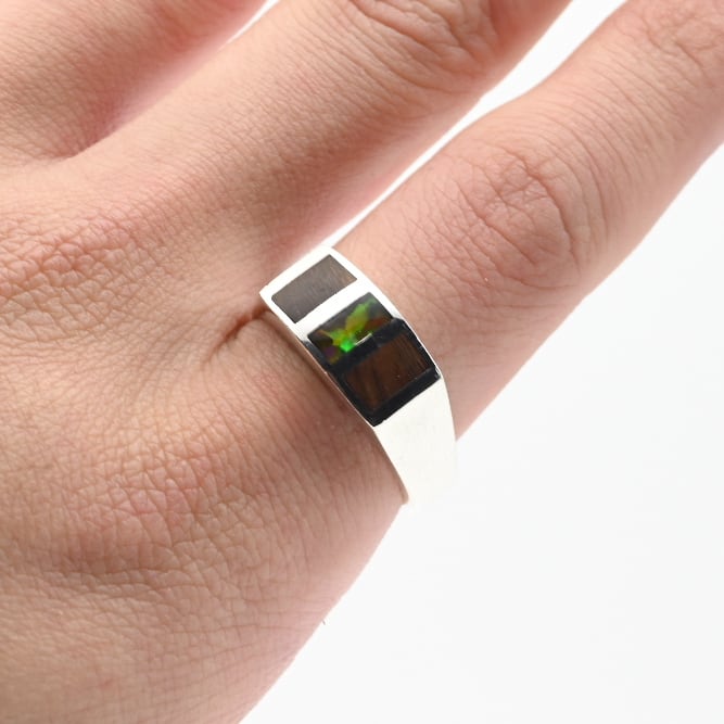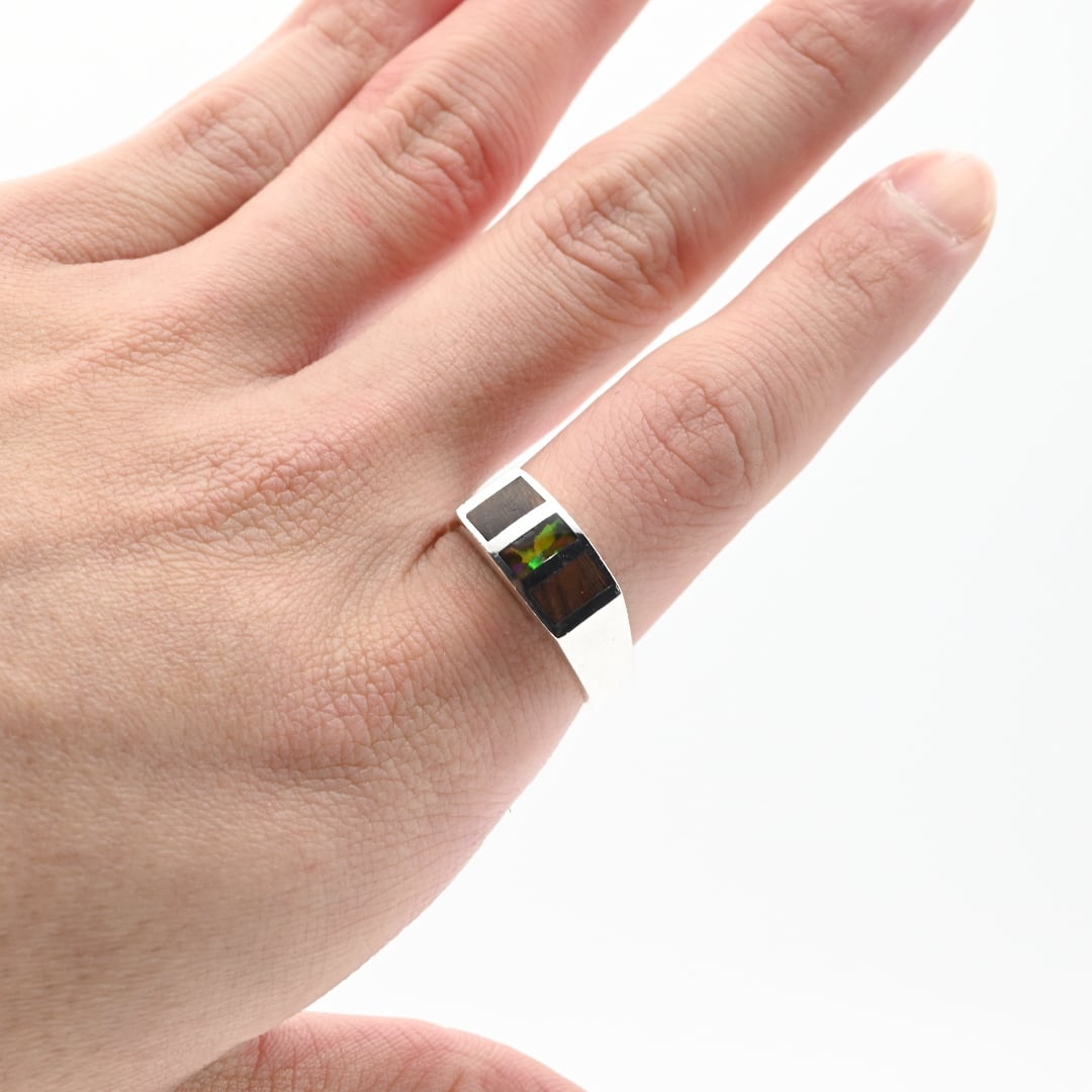 Black Opal / Wood Inlay Square Signet Ring #22.0 / Denmark