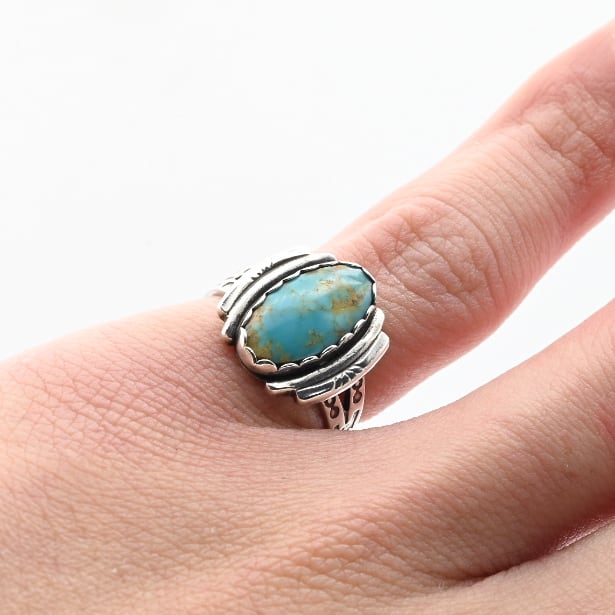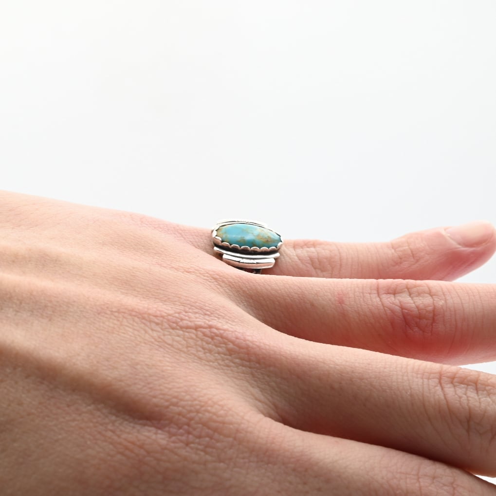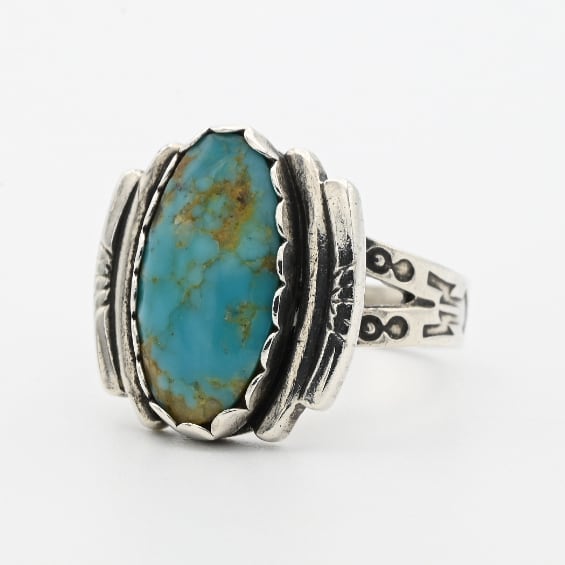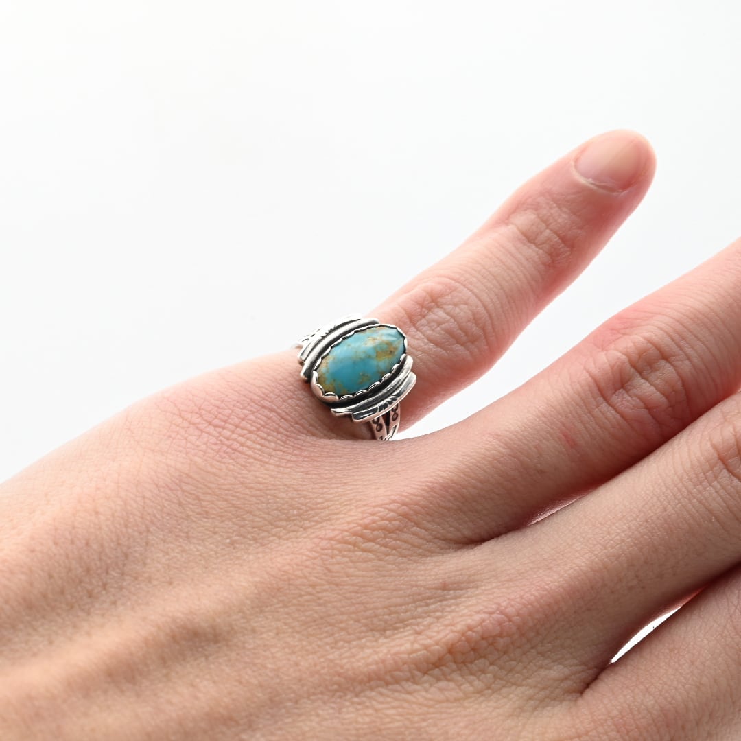 Turquoise Accent Designed Arm Statement Ring #10.5 / USA