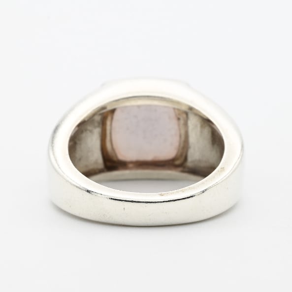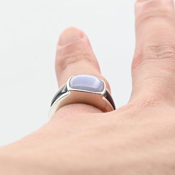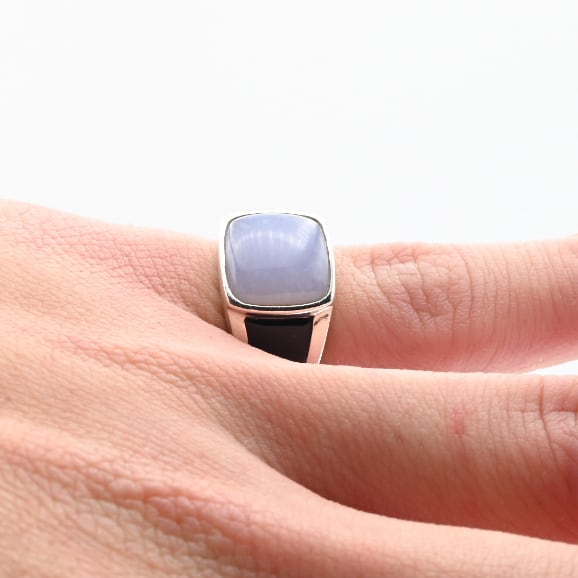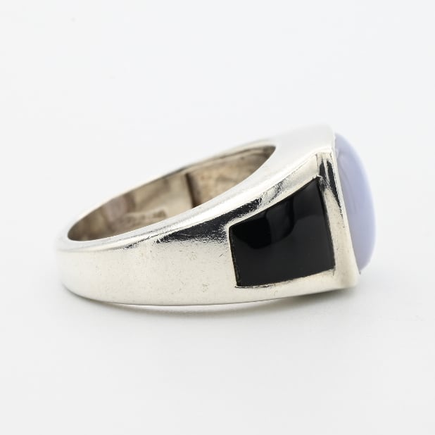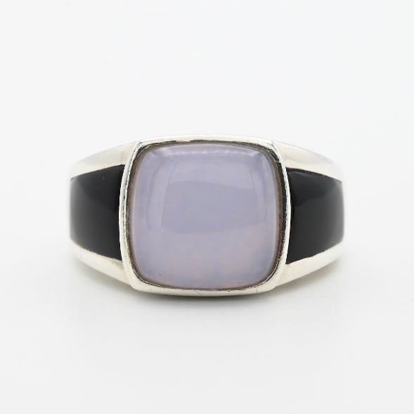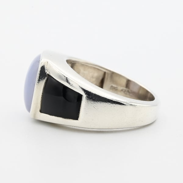White Agate / Black Onyx Accent Signet Ring #8.5 / Thailand