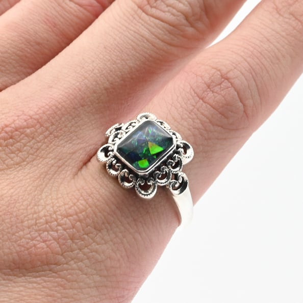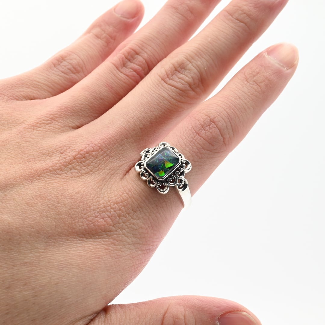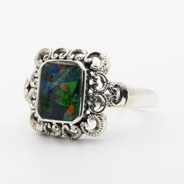 Mosaic Opal Inlay Graceful Design Ring #20.5 / Thailand