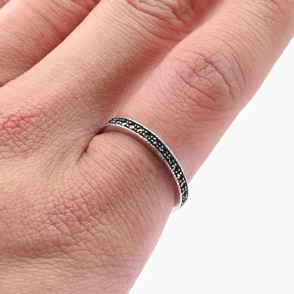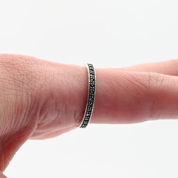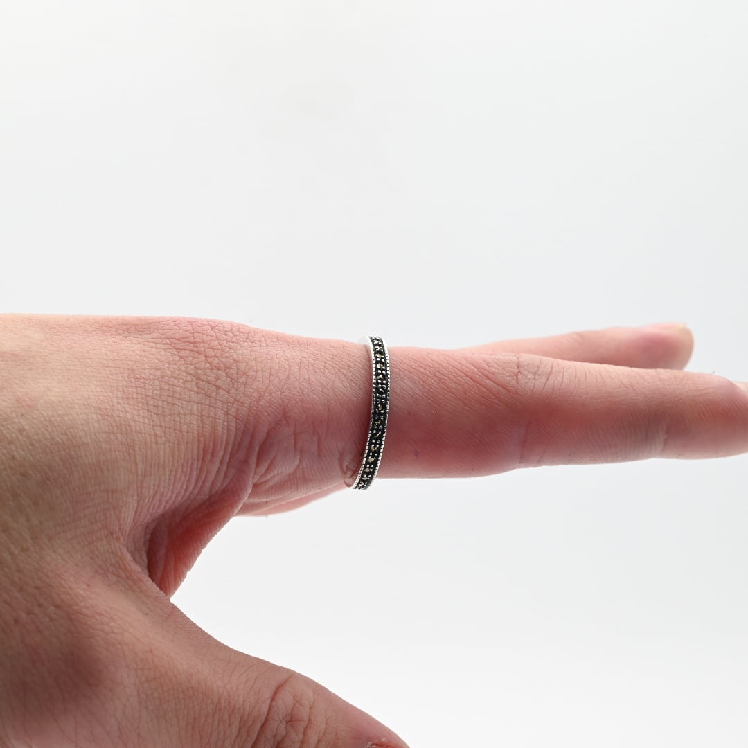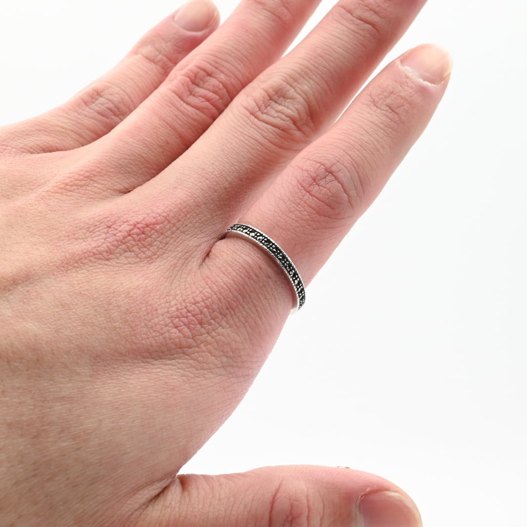 Marcasite Studs Accent Thin Eternity Ring #18.5 / Thailand