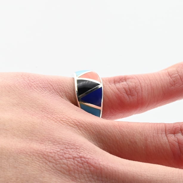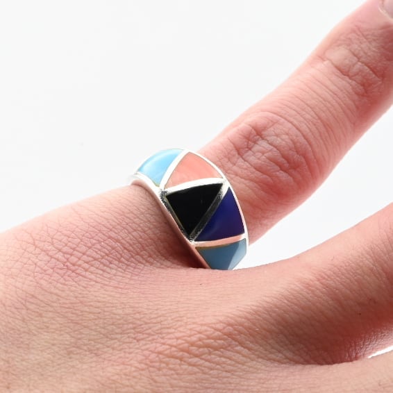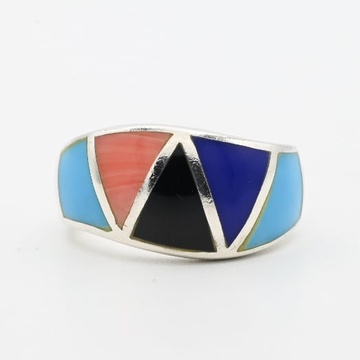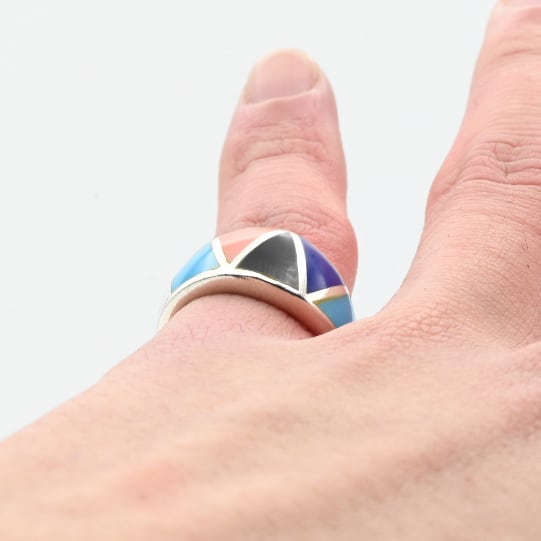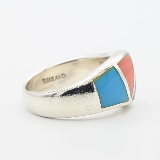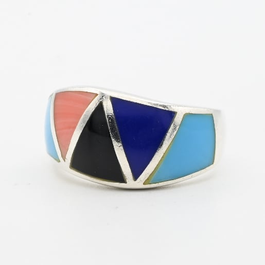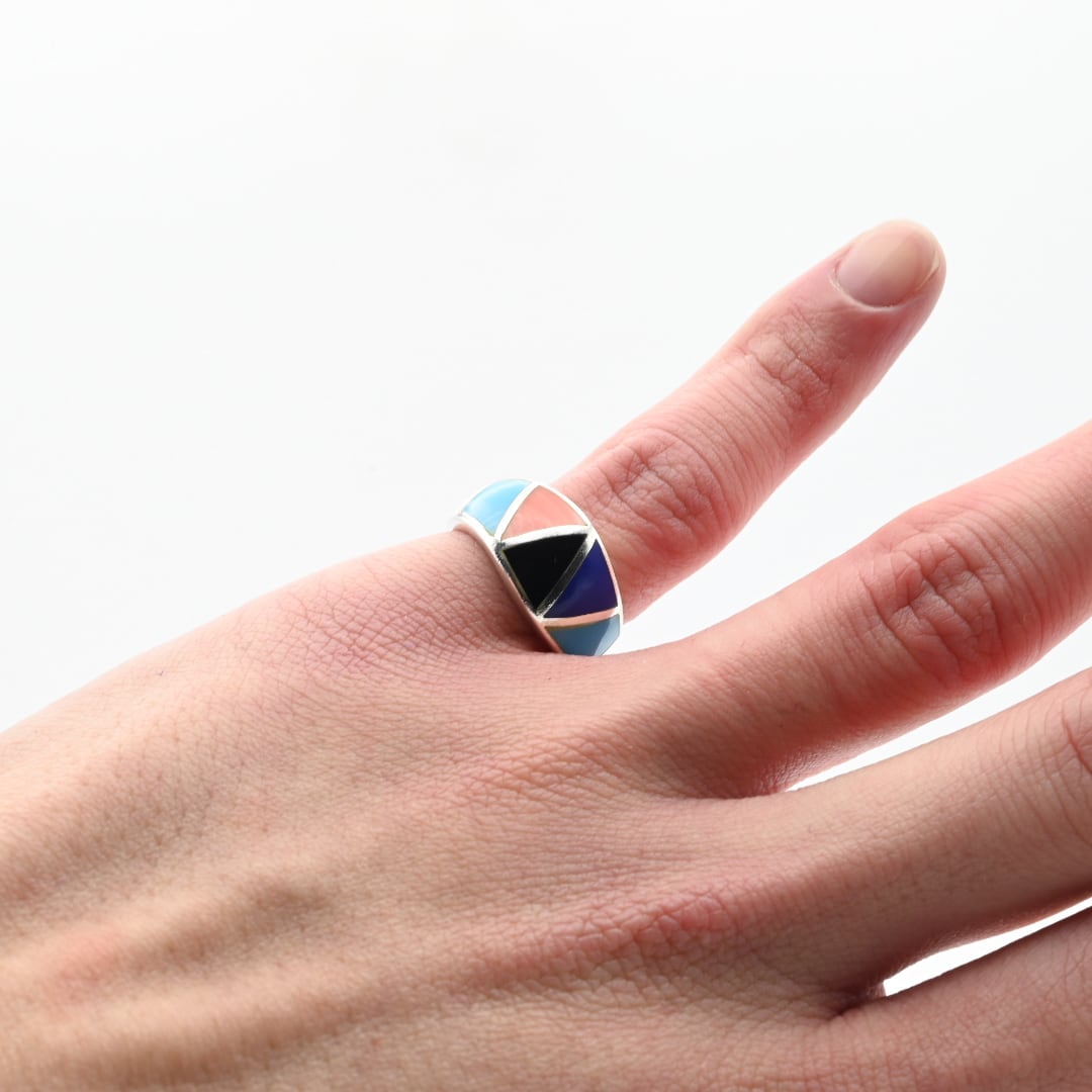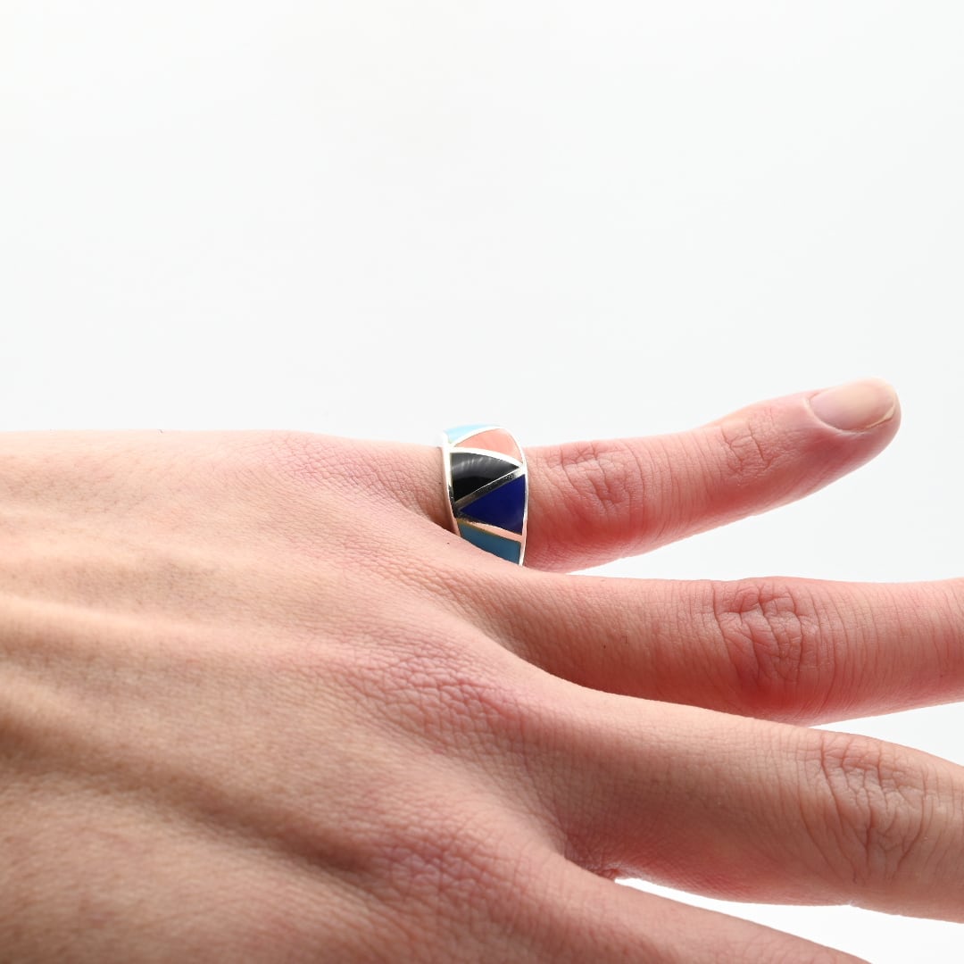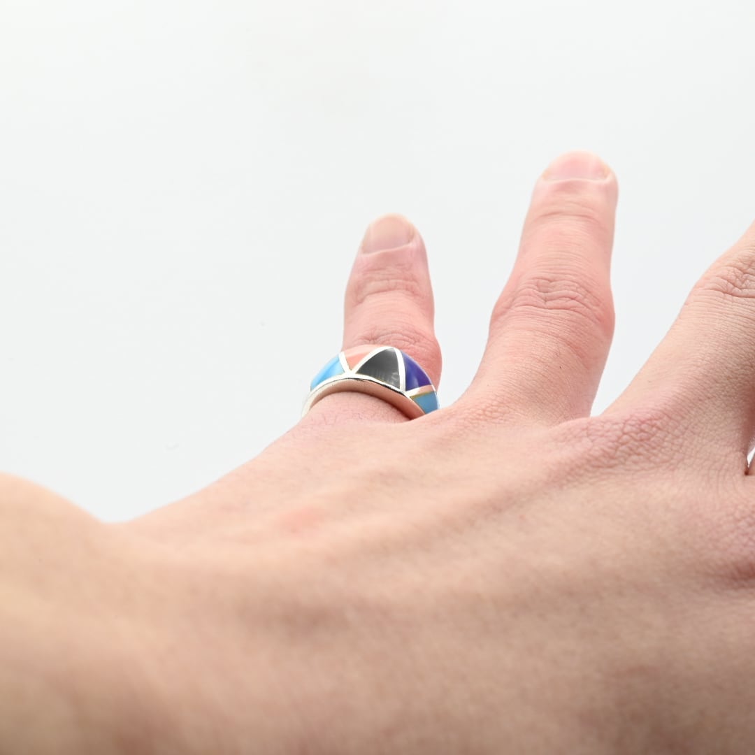 Multi Color Stone Inlay Wavy Design Ring #11.0 / Thailand