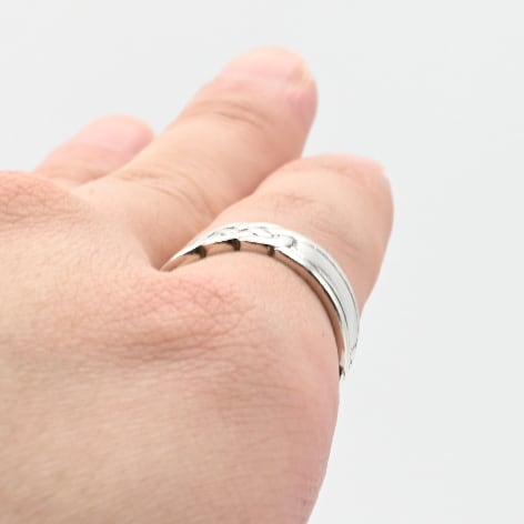 立体感を有するデザインは手作業によって生み出されたもので、燻加工も相まって、メリハリの有る陰影をお楽しみいただけます。