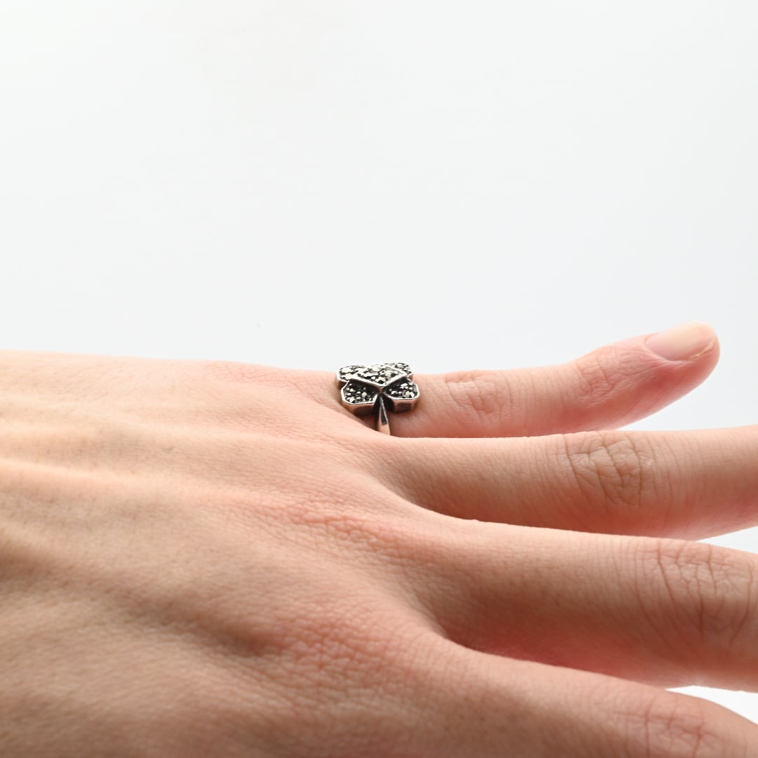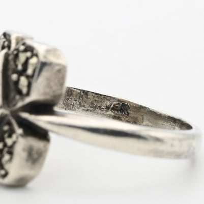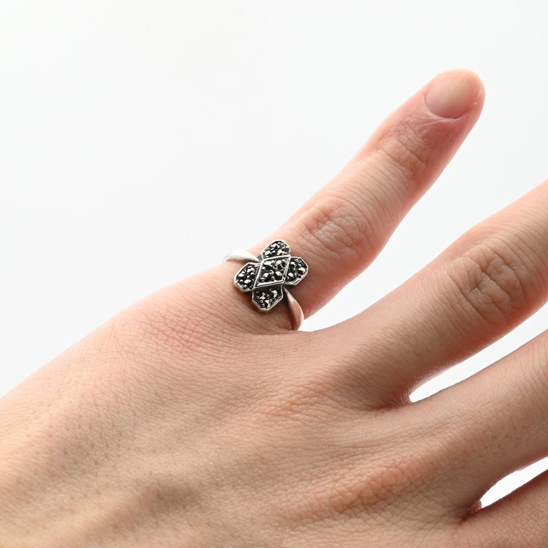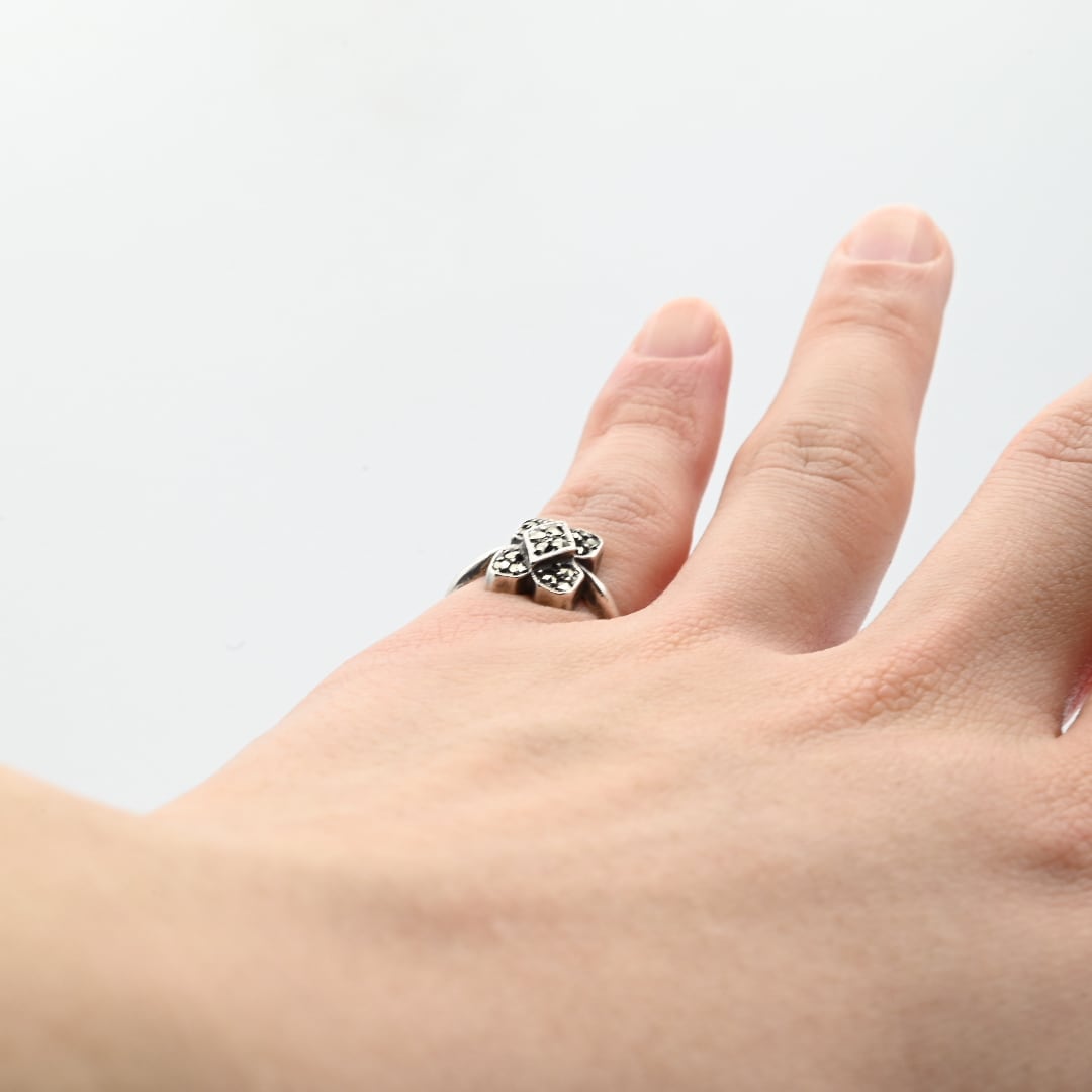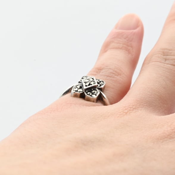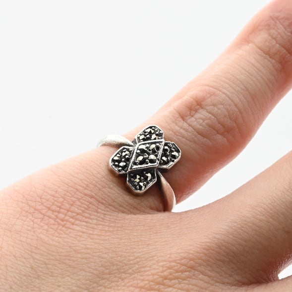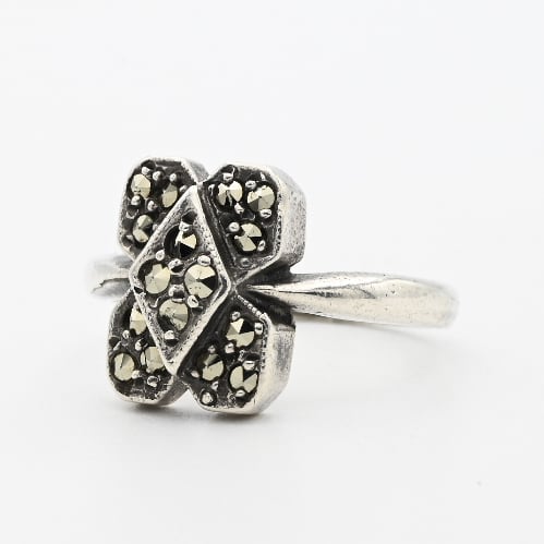 Marcasite Accent Square Flower Motif Ring #10.0 / Denmark