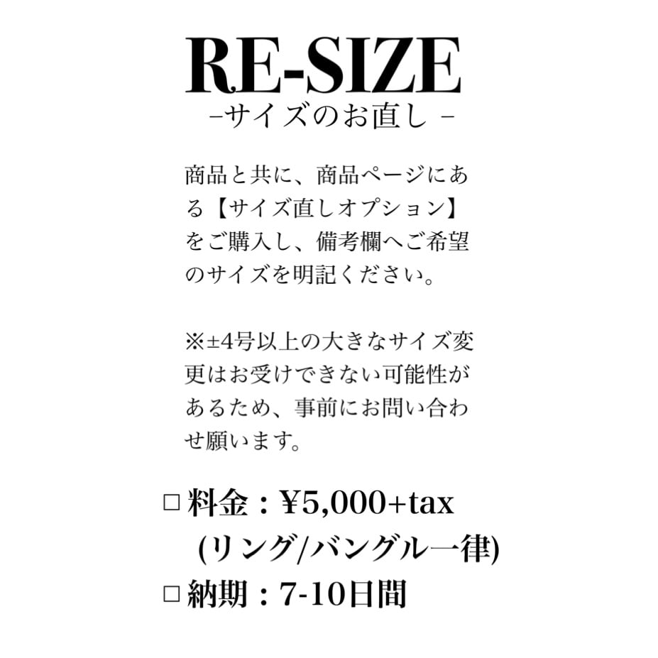 サイズ直しをご希望のお客様は以下のページより、サイズ直しオプションを併せてご購入ください。