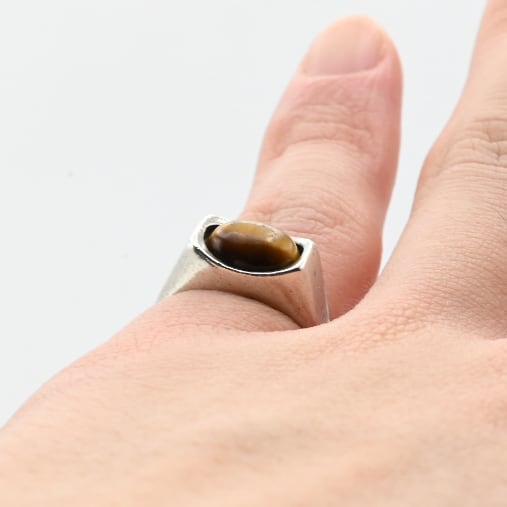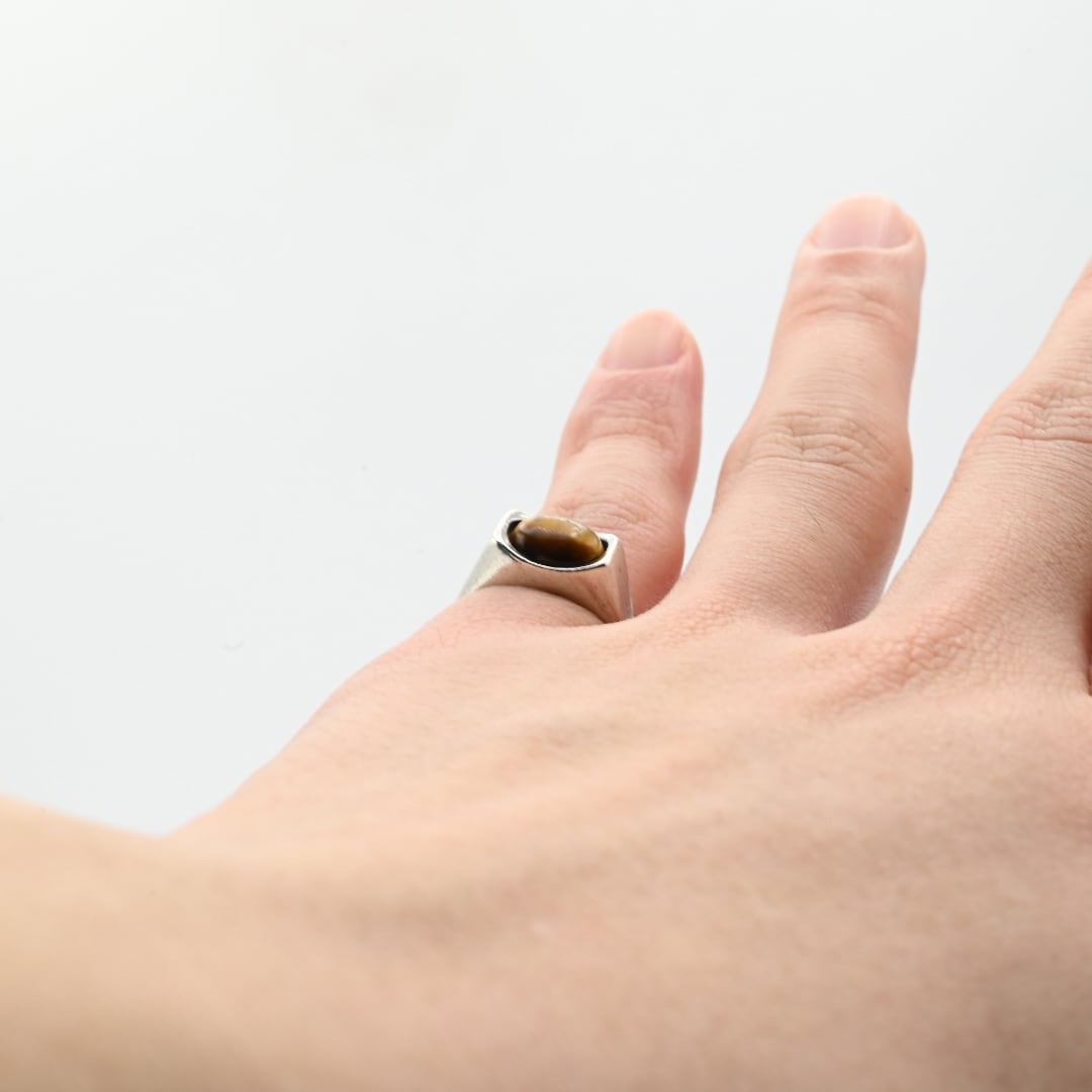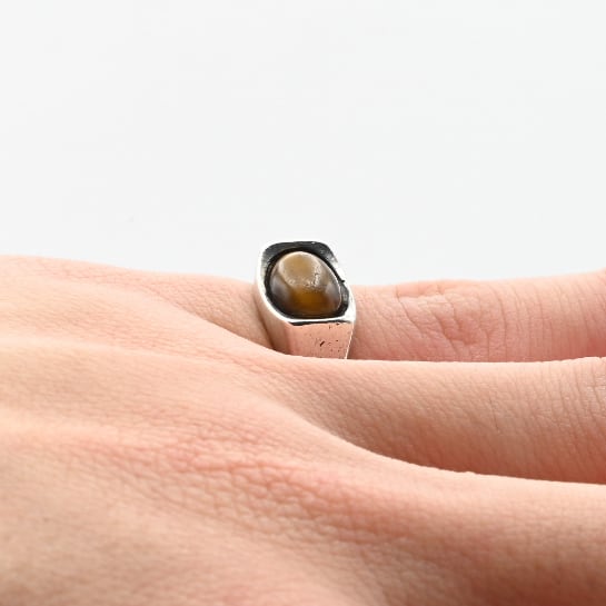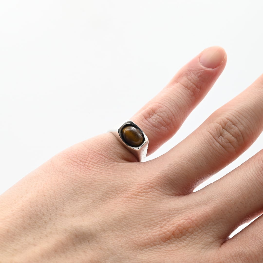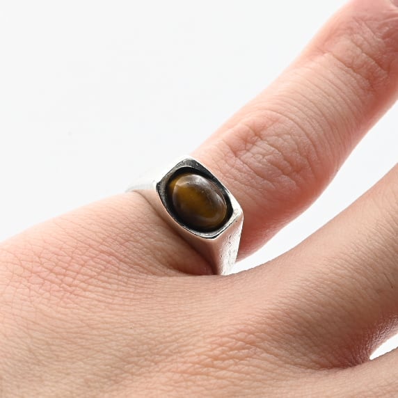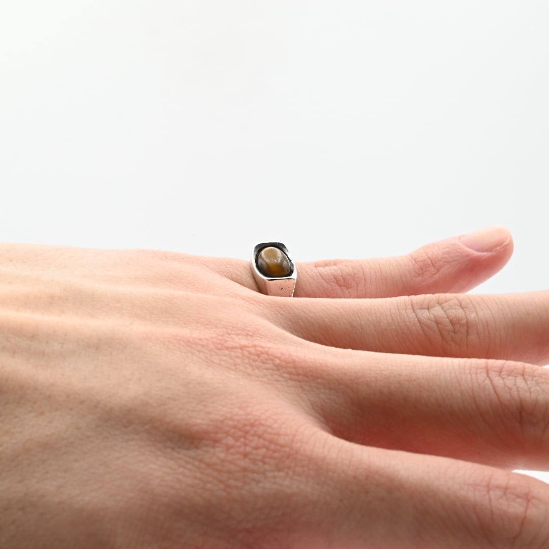 Golden Tiger Eye Top Minimum Signet Ring #9.5 / England