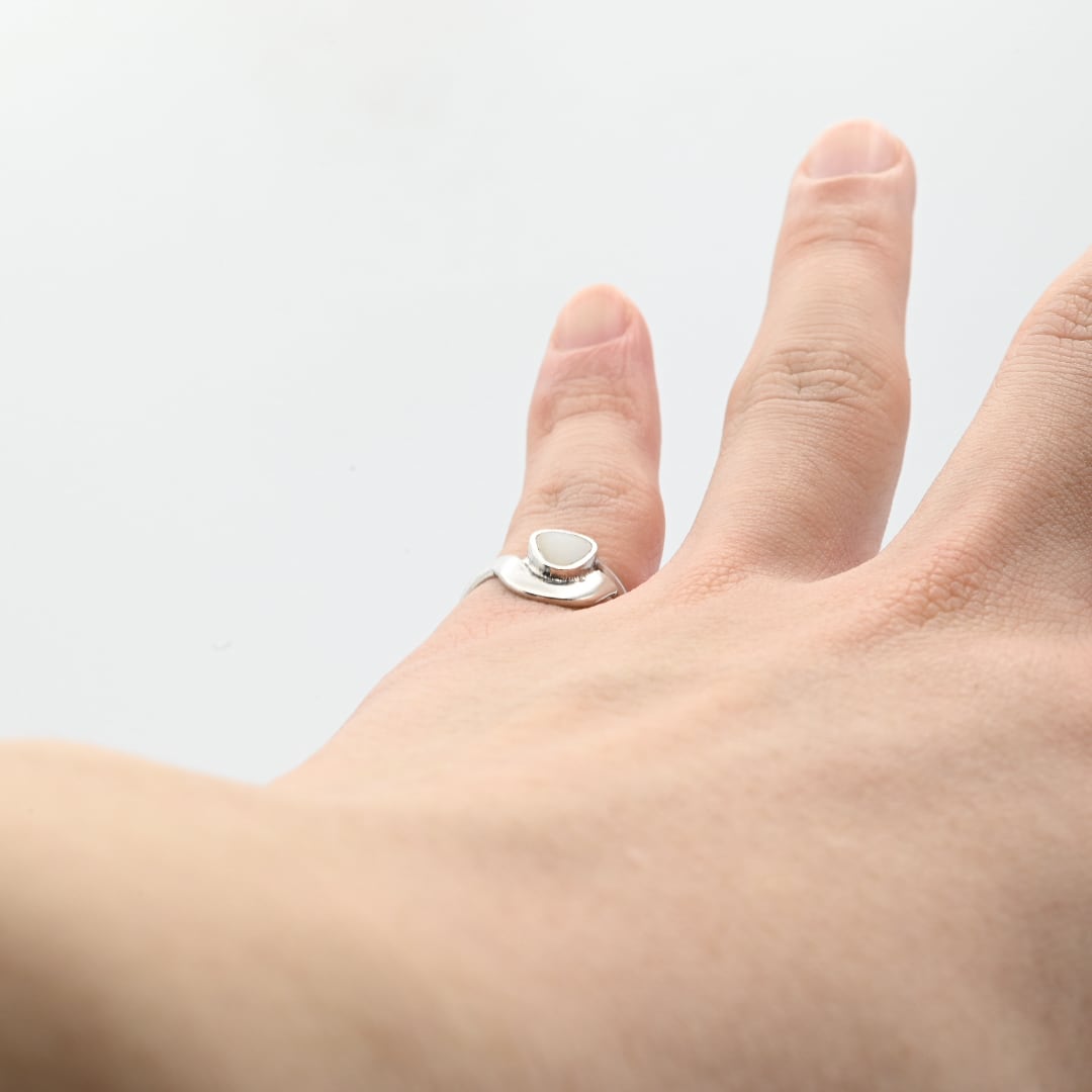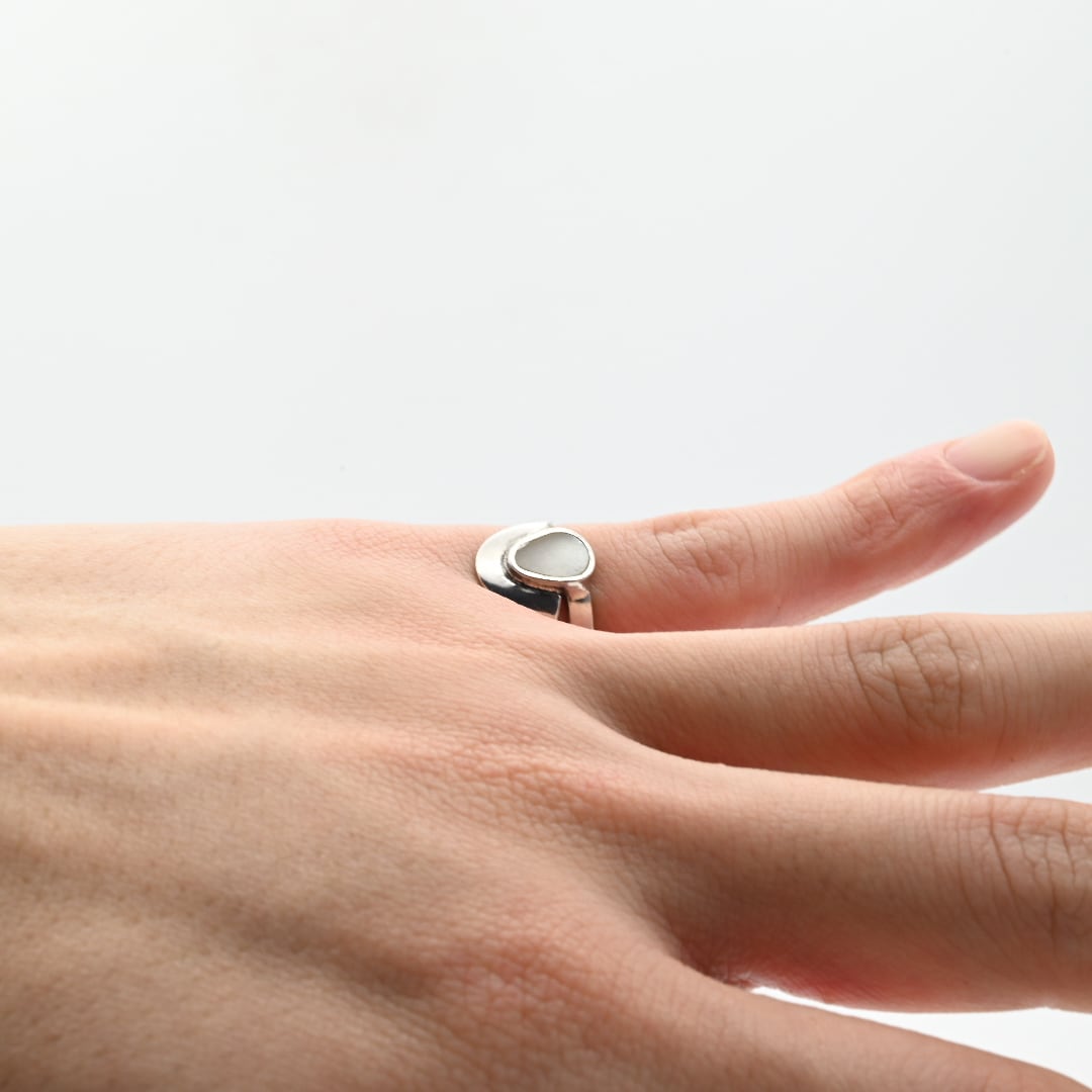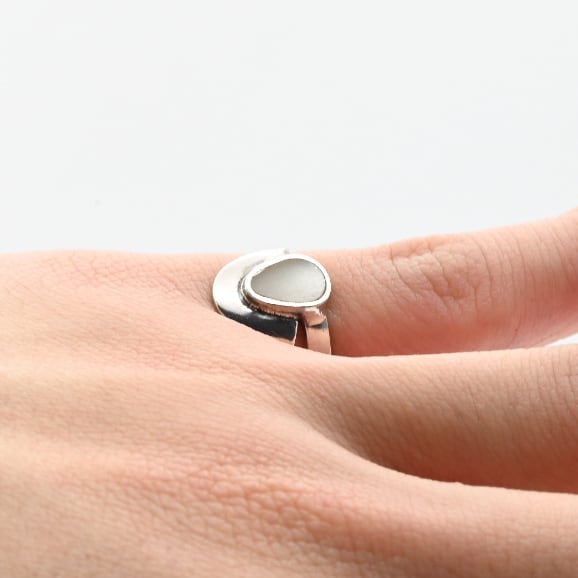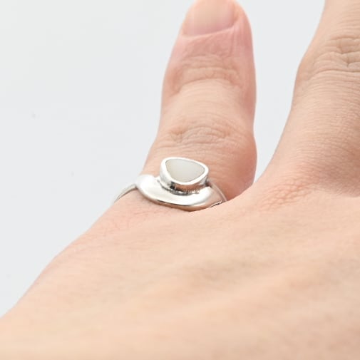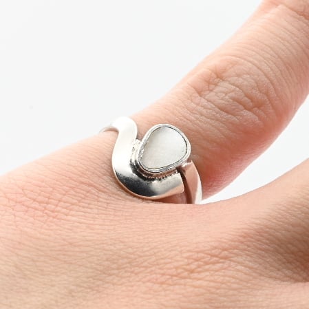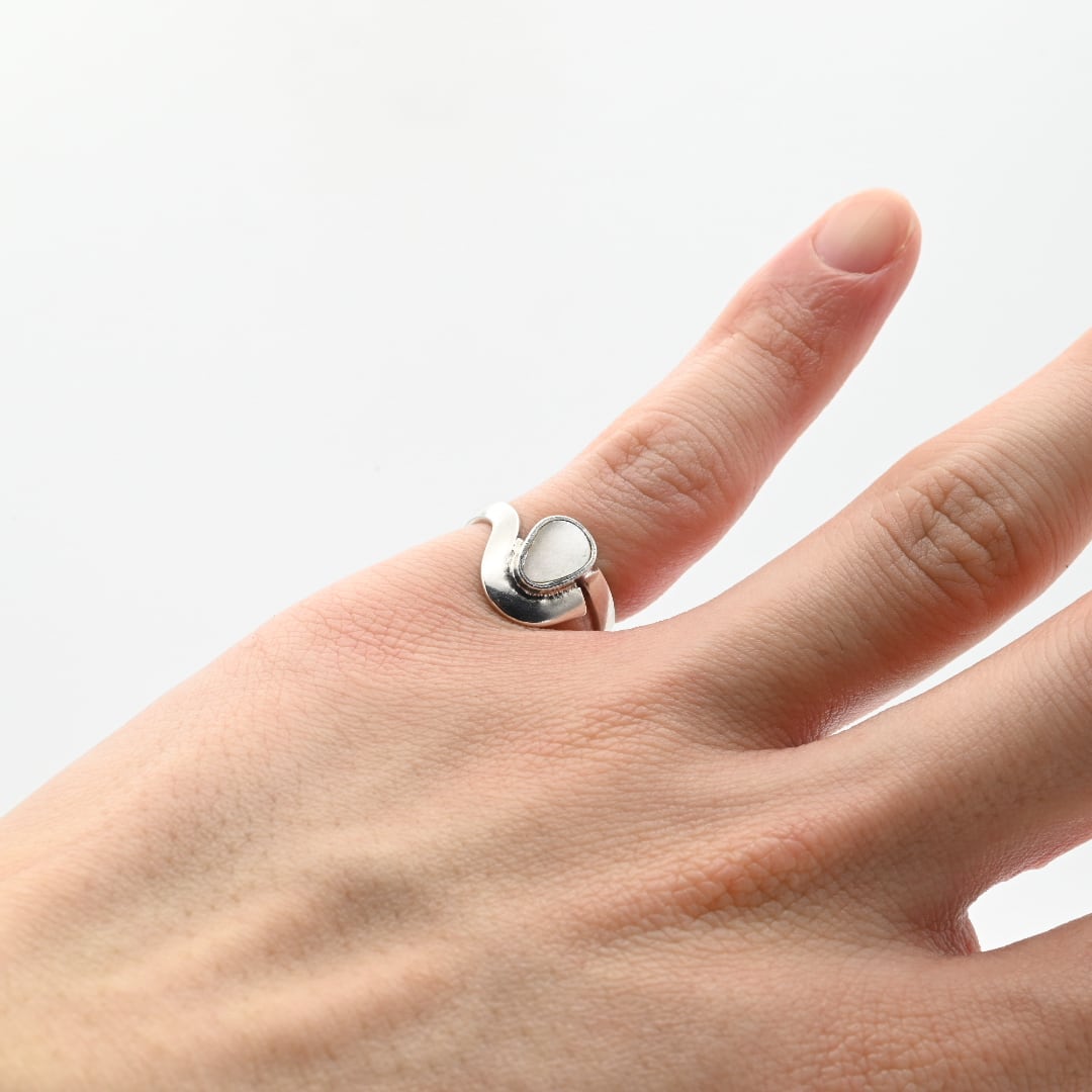 White Mother Of Pearl Inlay Modern Style Ring #9.5 / Denmark