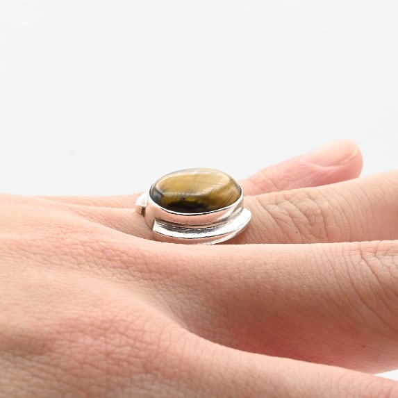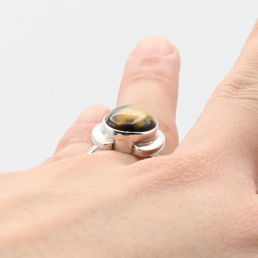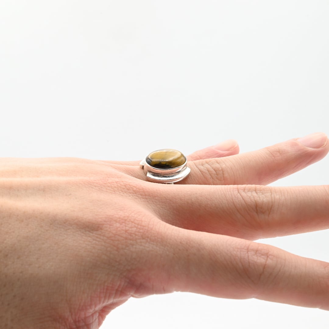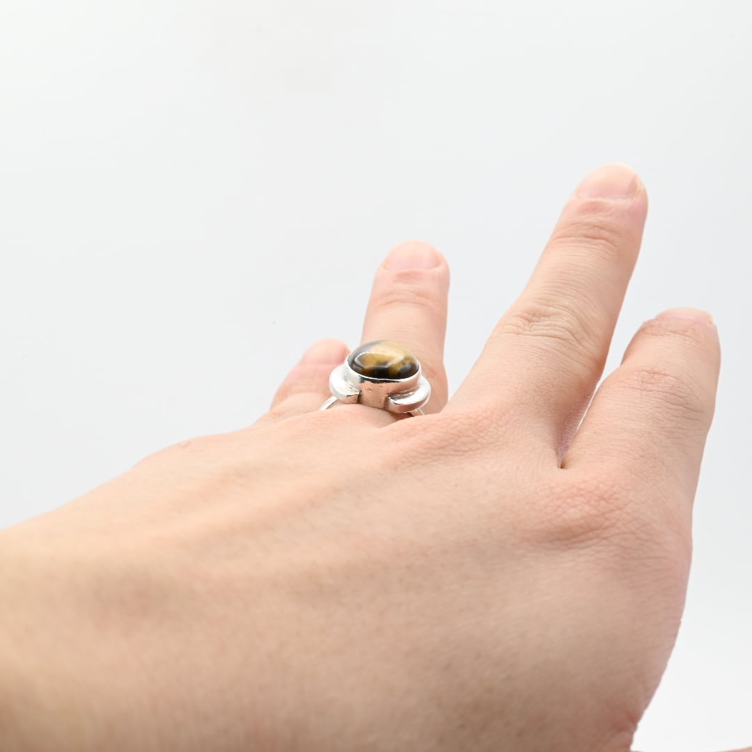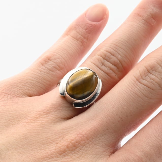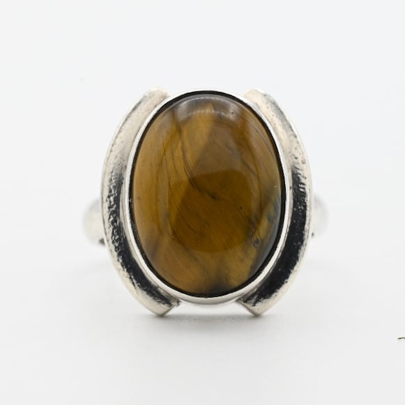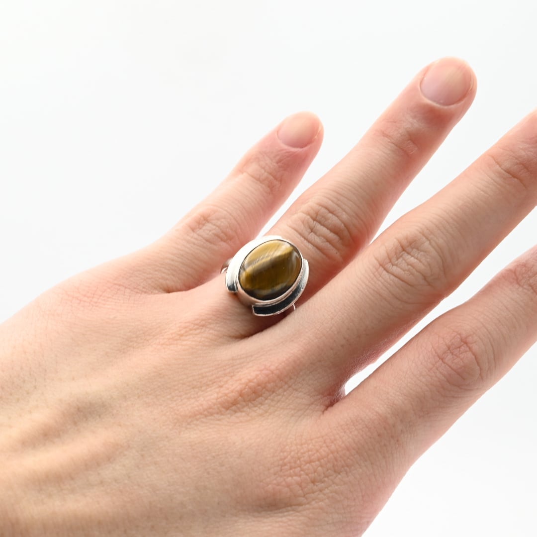Rounded Golden Tiger Eye Top Statement Ring #13.5 / Denmark