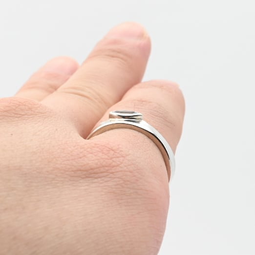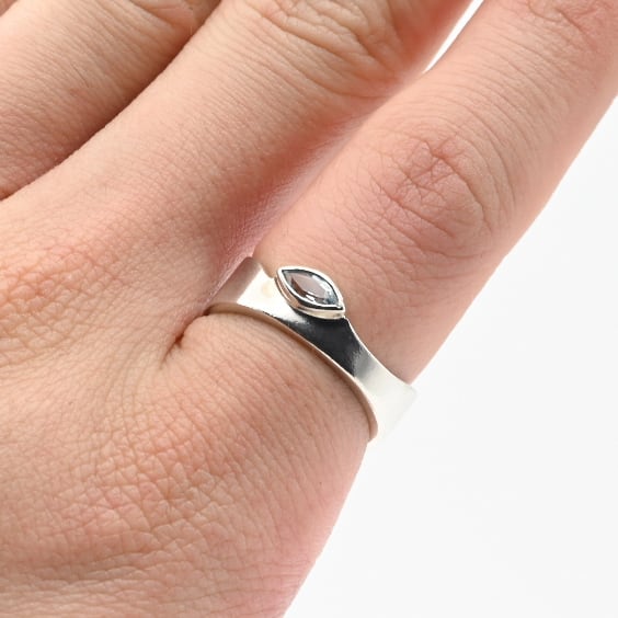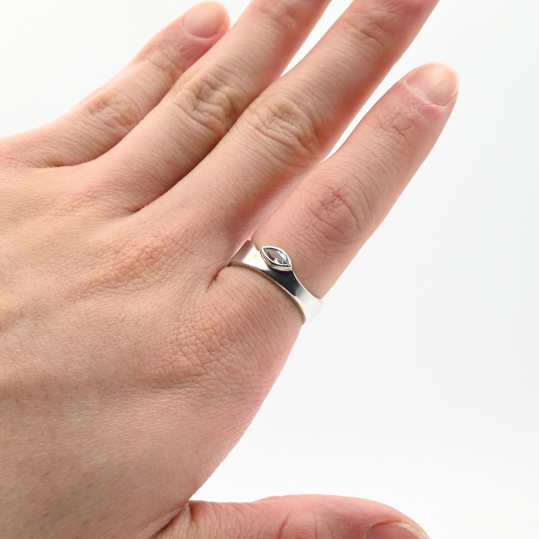 上部が波打つモダンなデザインと、トップに煌めくブルーストーンが目を惹くアイテム。
