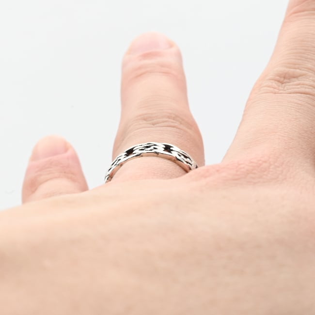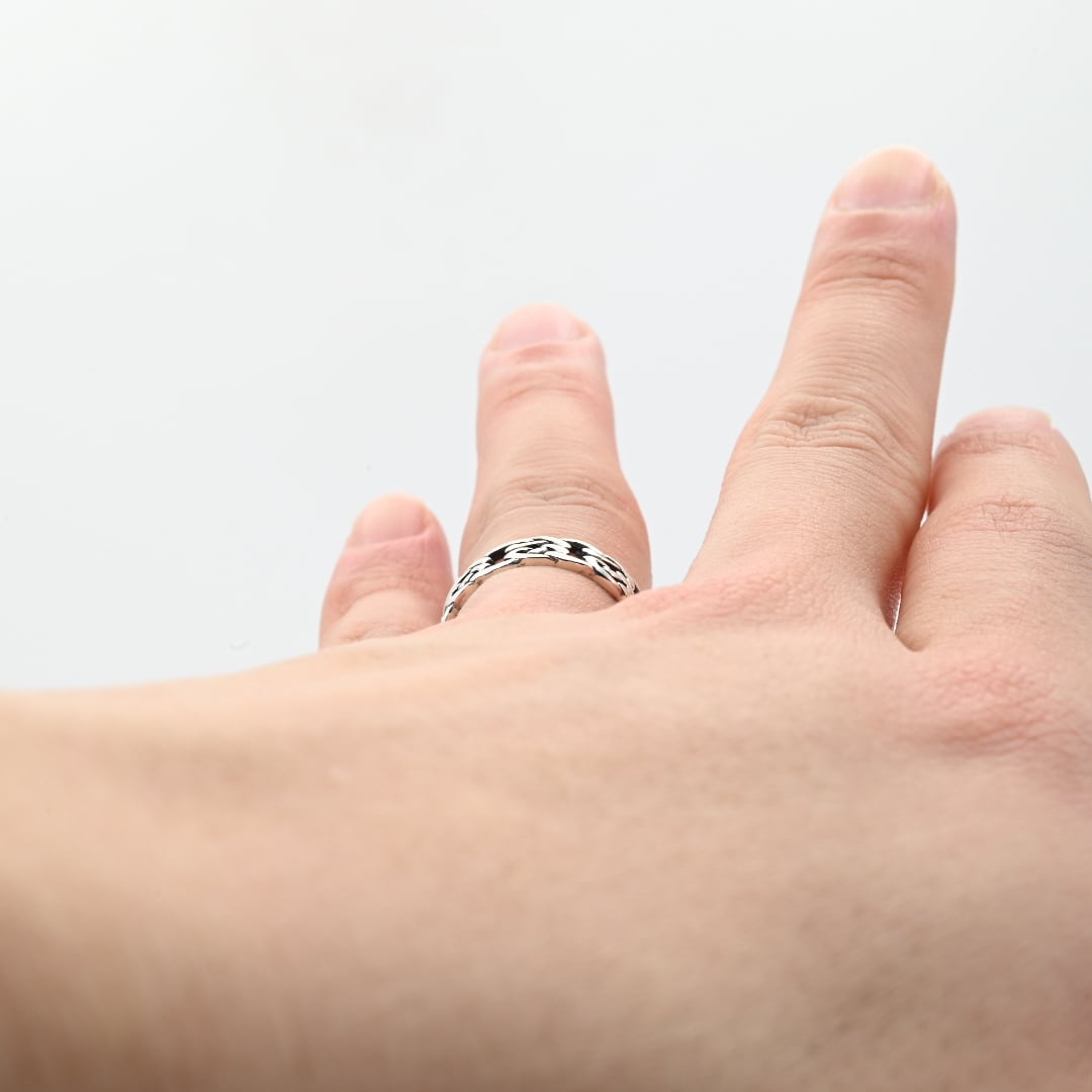 美しい透かし模様が目を惹くリング。