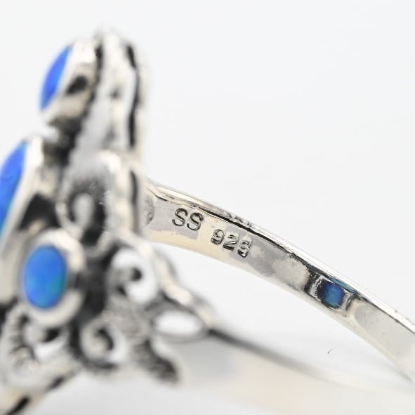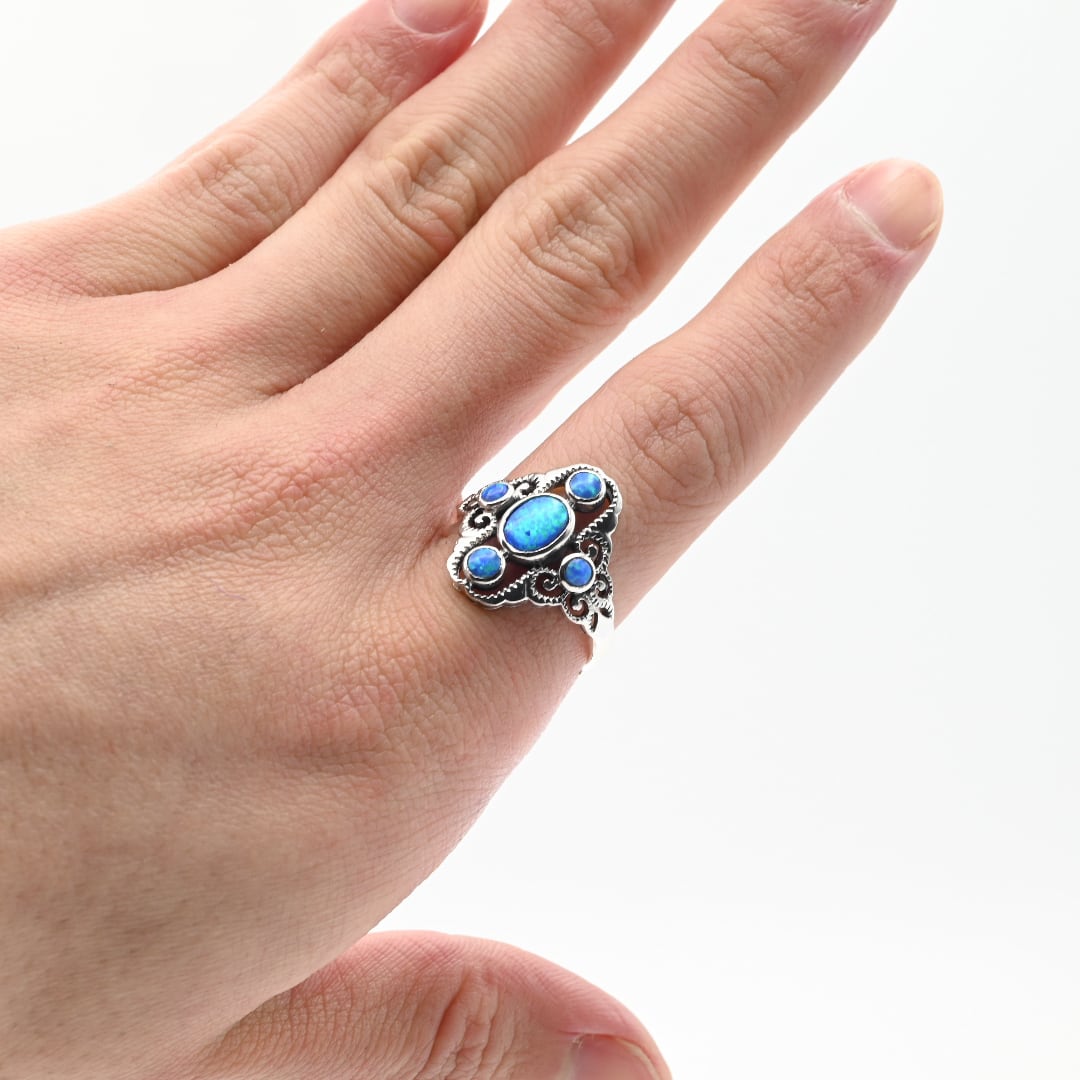 Blue Opal Accent Graceful Design Ring #18.5 / Denmark