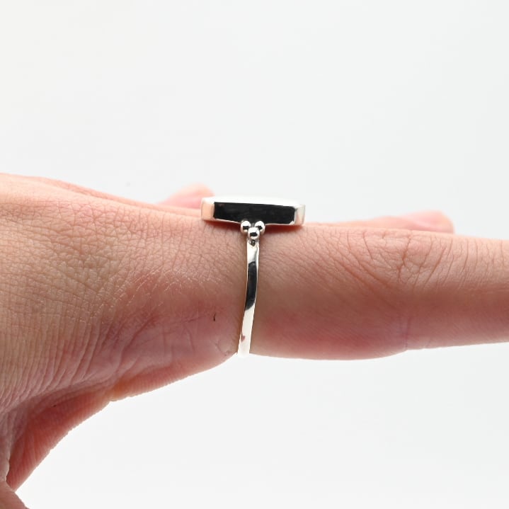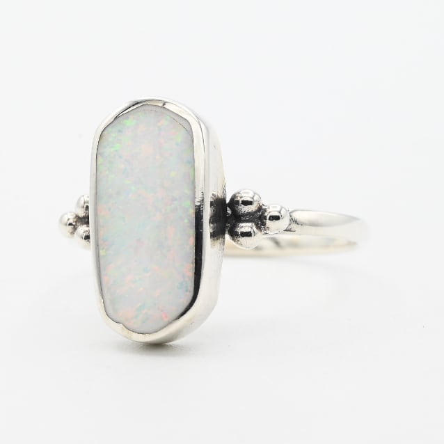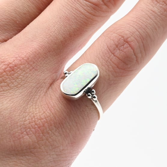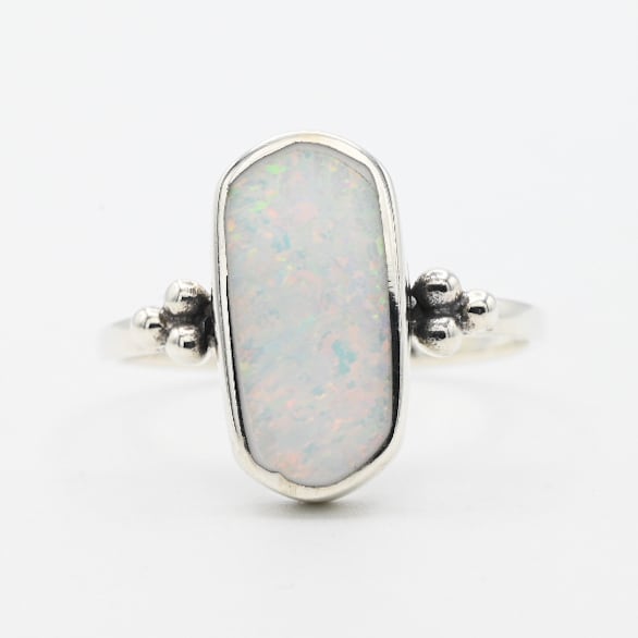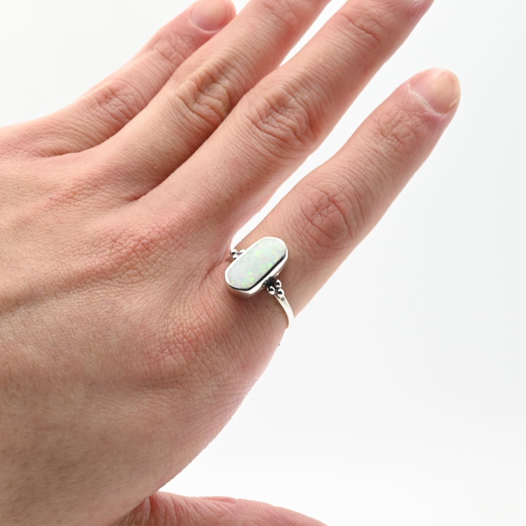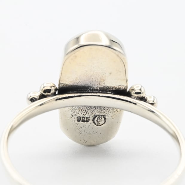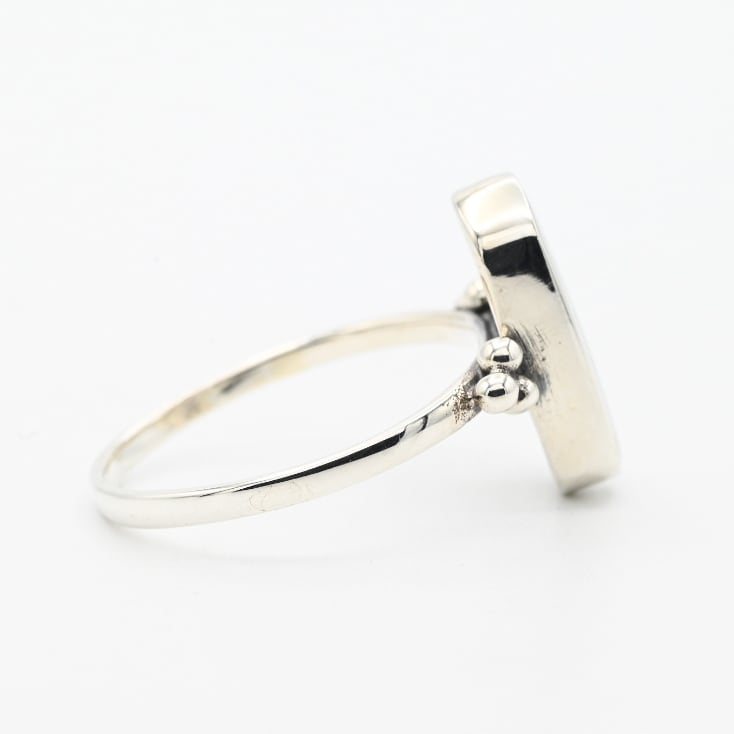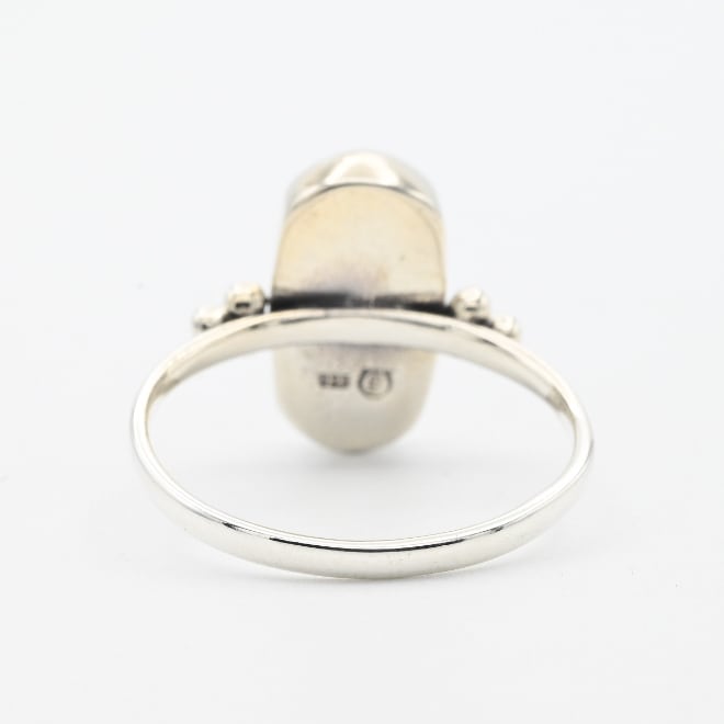 White Opal Inlay Wide Oval Statement Ring #15.5 / Denmark