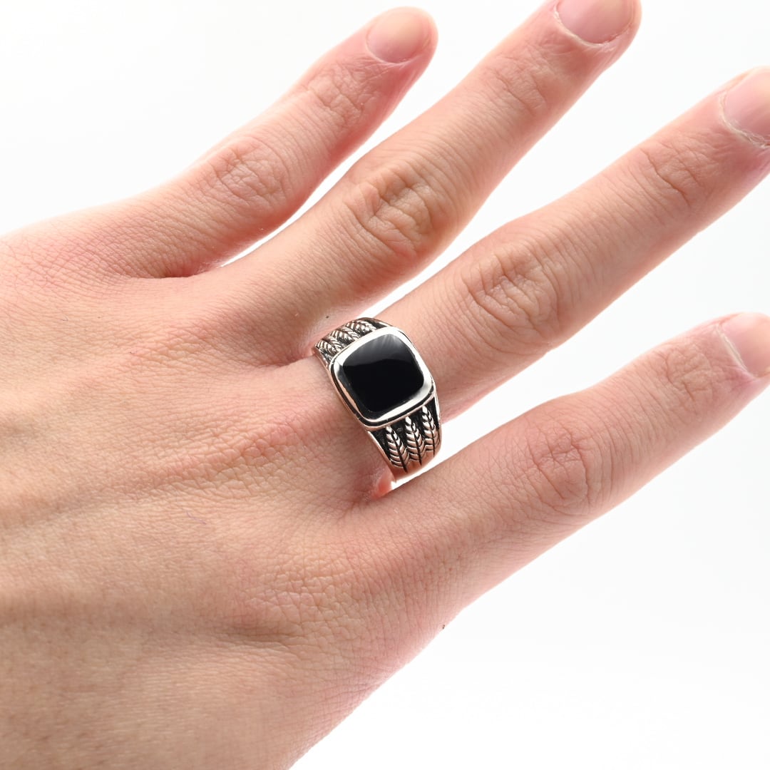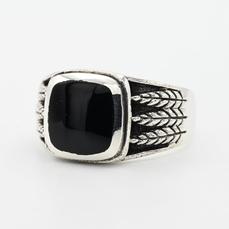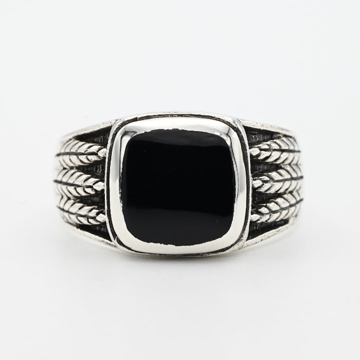 Square Black Onyx Top Cutting Out Signet Ring #27.0 / Denmark